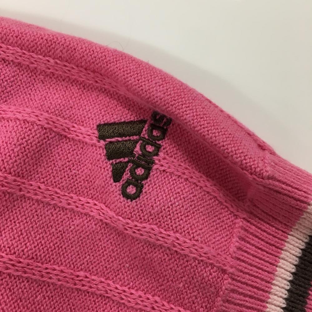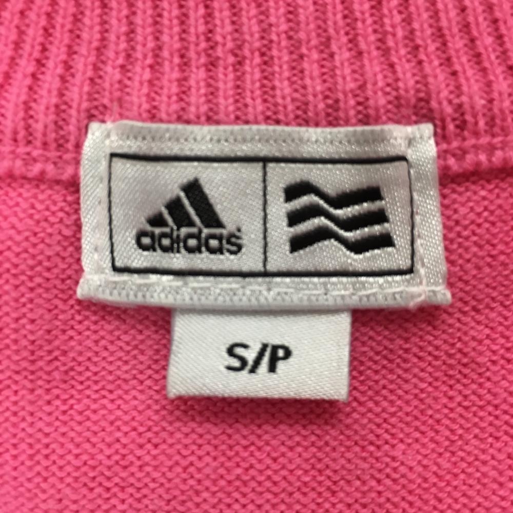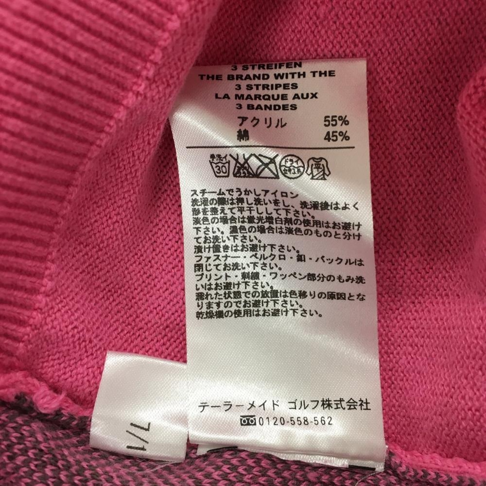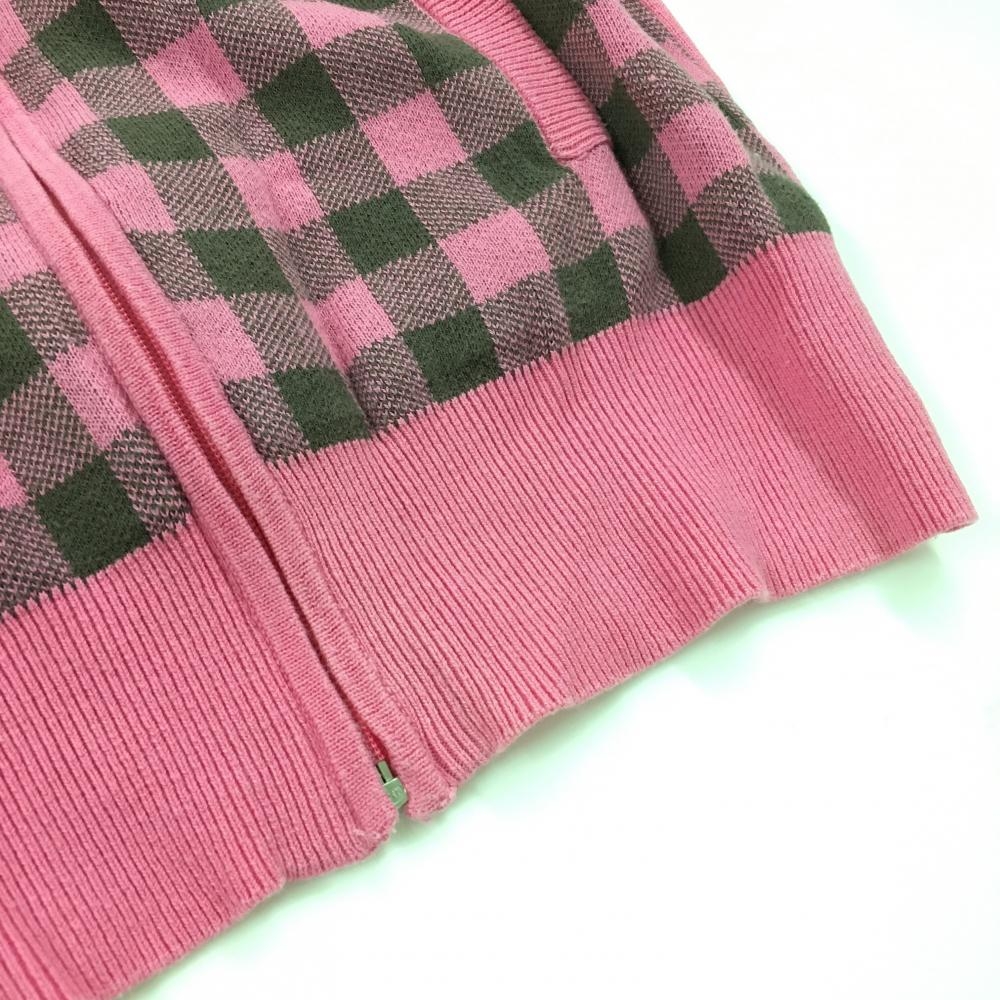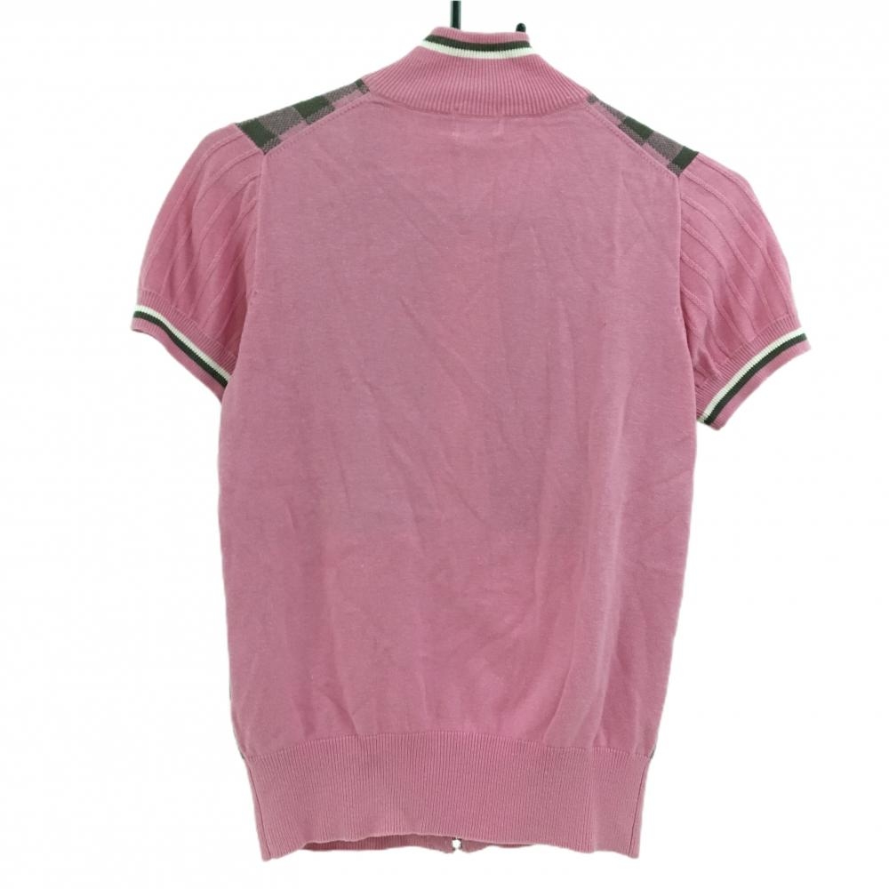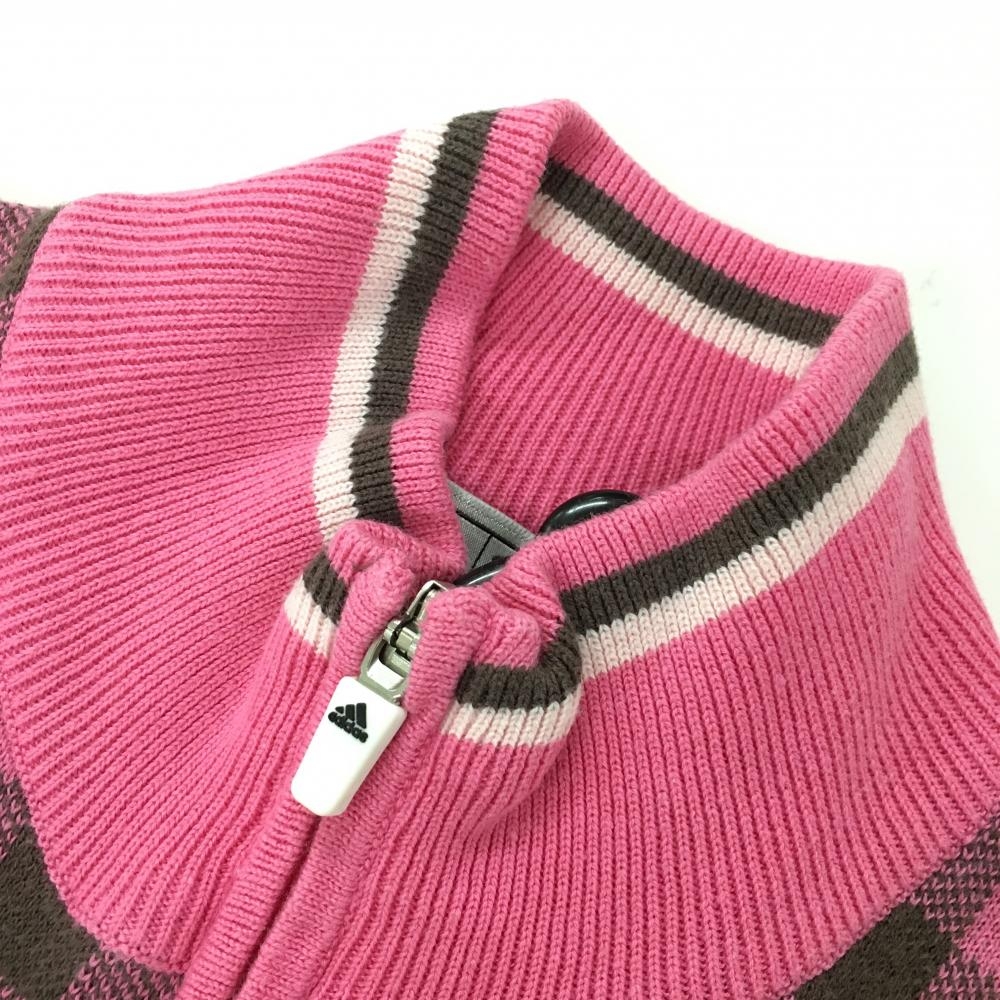 アディダス 半袖ニットブルゾン ピンク×ブラウン チェック ロゴ刺しゅう レディース S/P ゴルフウェア adidas