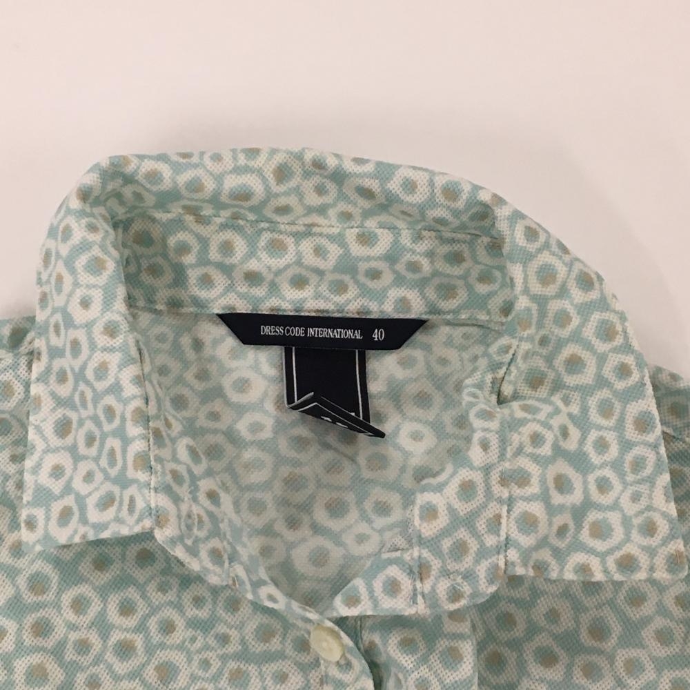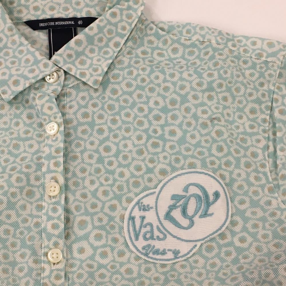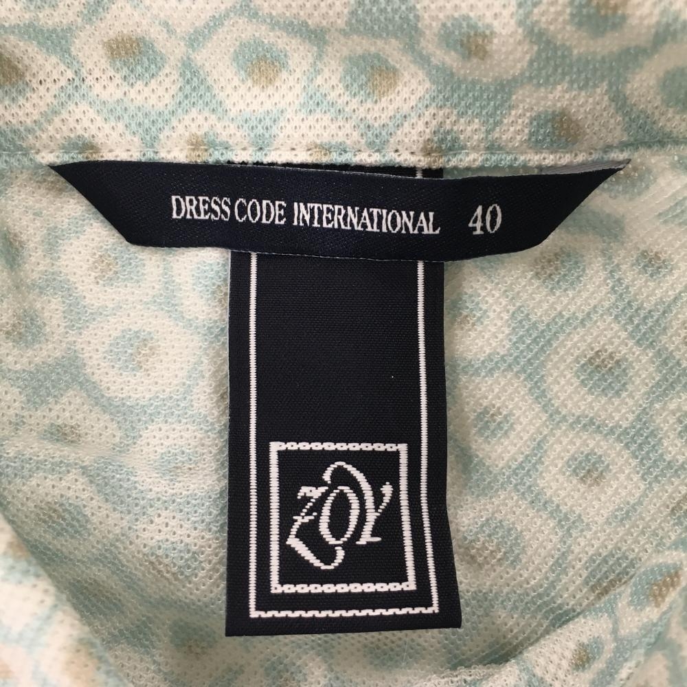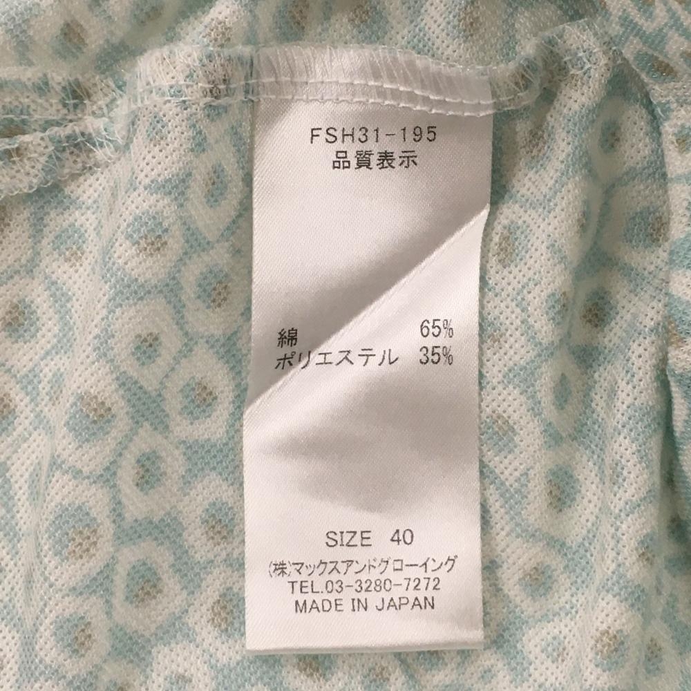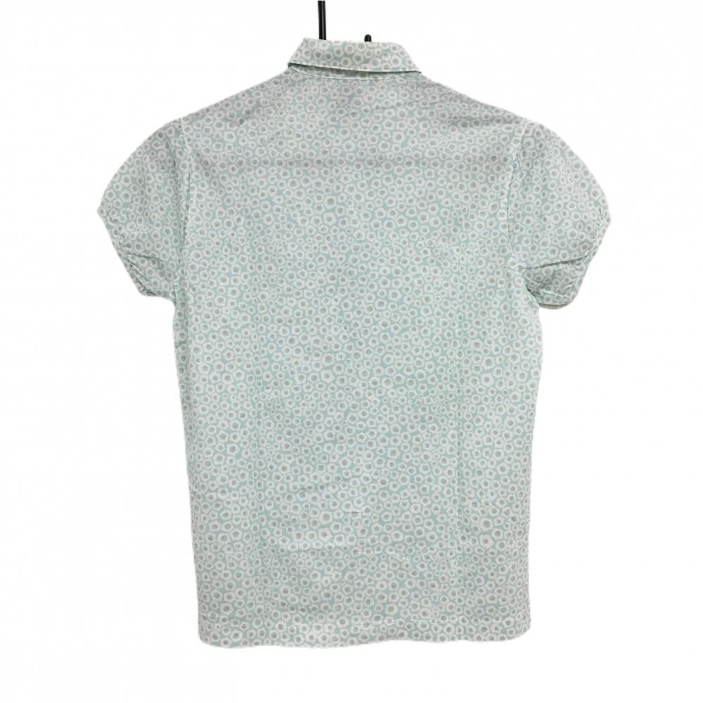 ゾーイ 半袖ポロシャツ ライトブルー×白 総柄 ロゴワッペン レディース 40(L) ゴルフウェア ZOY