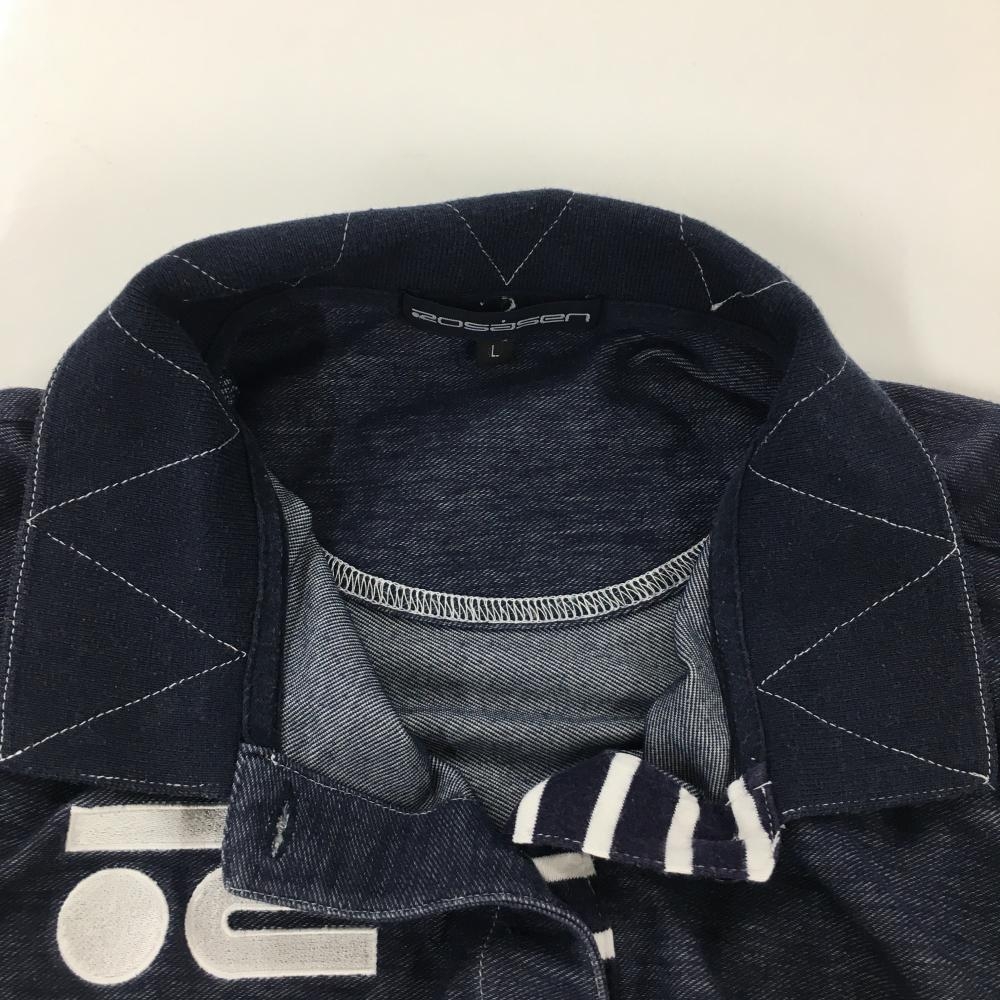 ロサーセン 半袖ポロシャツ ネイビー×白 デニム調 ロゴ刺しゅう レディース L ゴルフウェア Rosasen