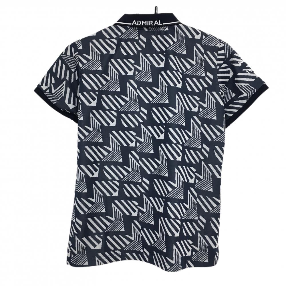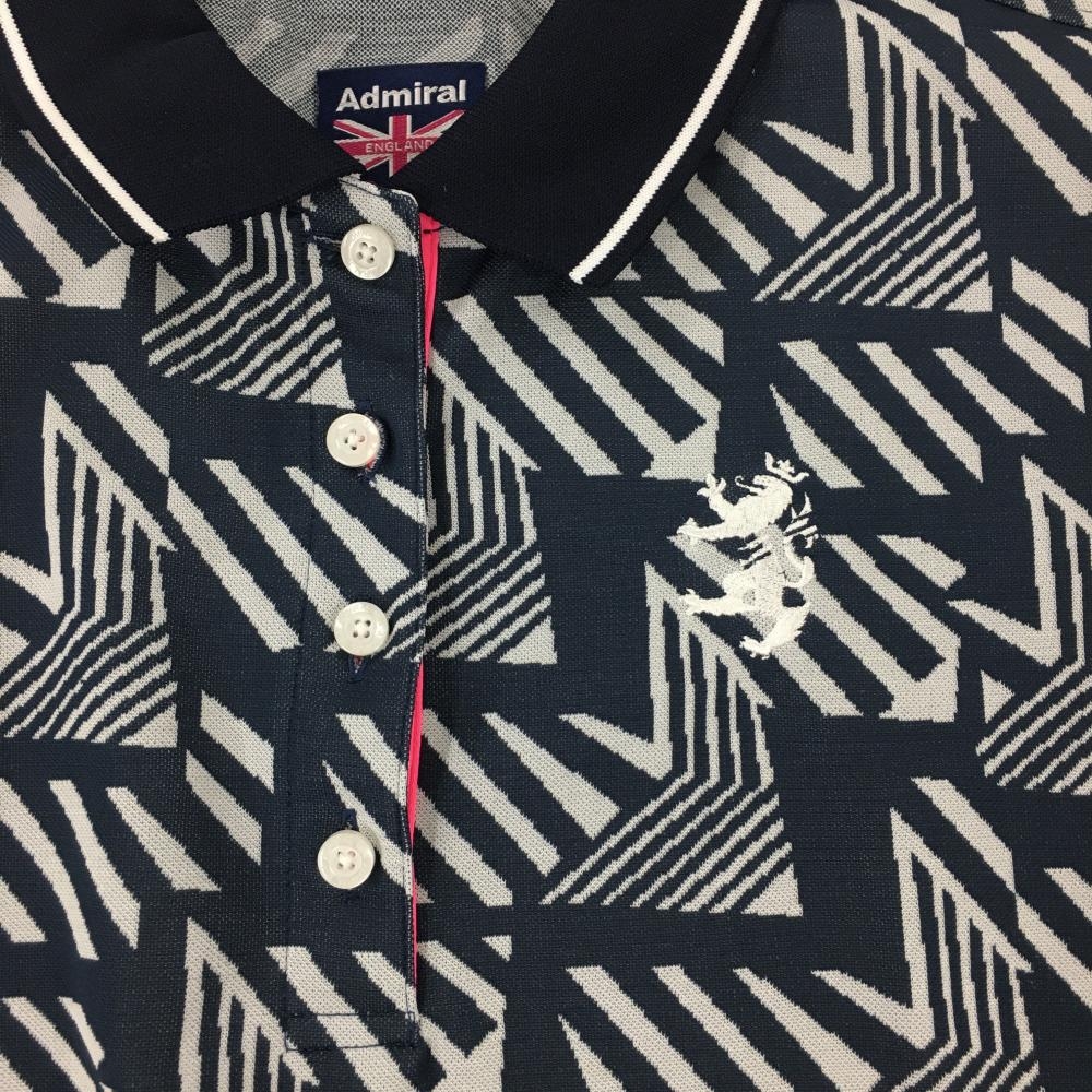 【超美品】アドミラル 半袖ポロシャツ ネイビー×白 総柄 ロゴ刺しゅう レディース L ゴルフウェア Admiral