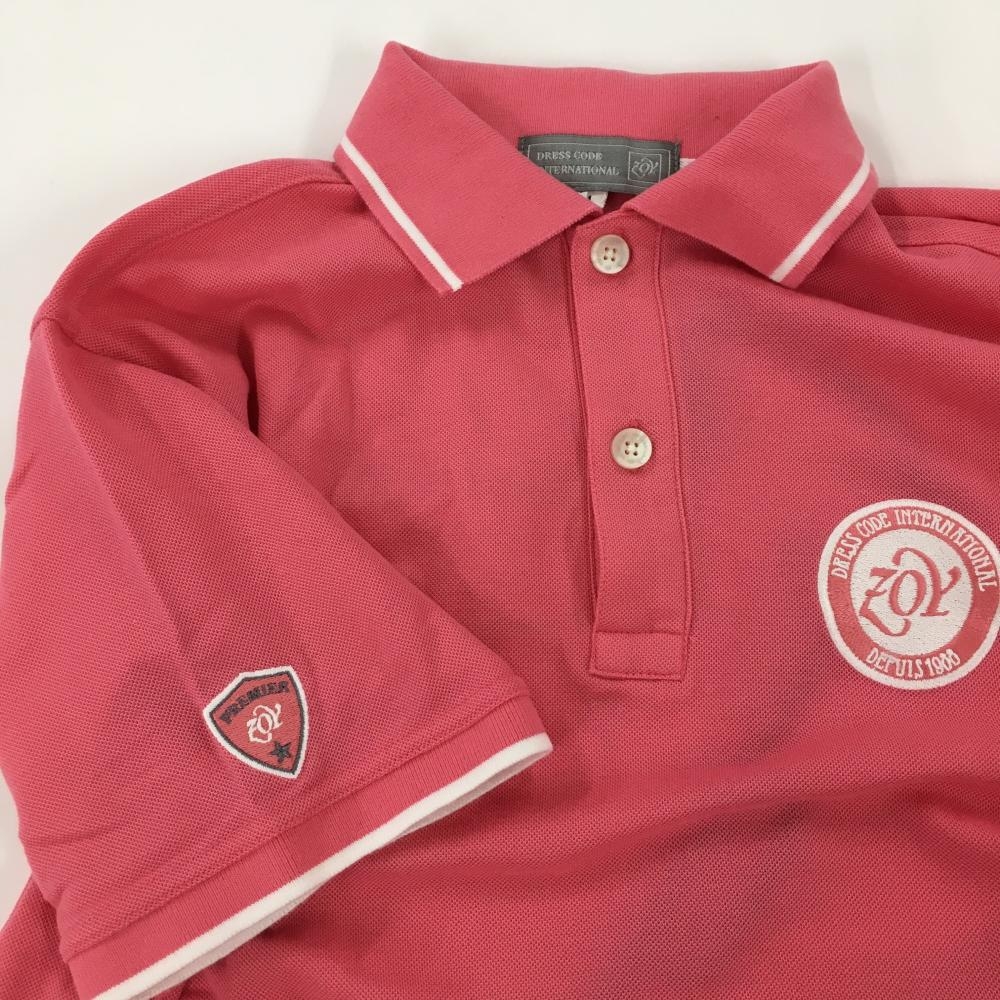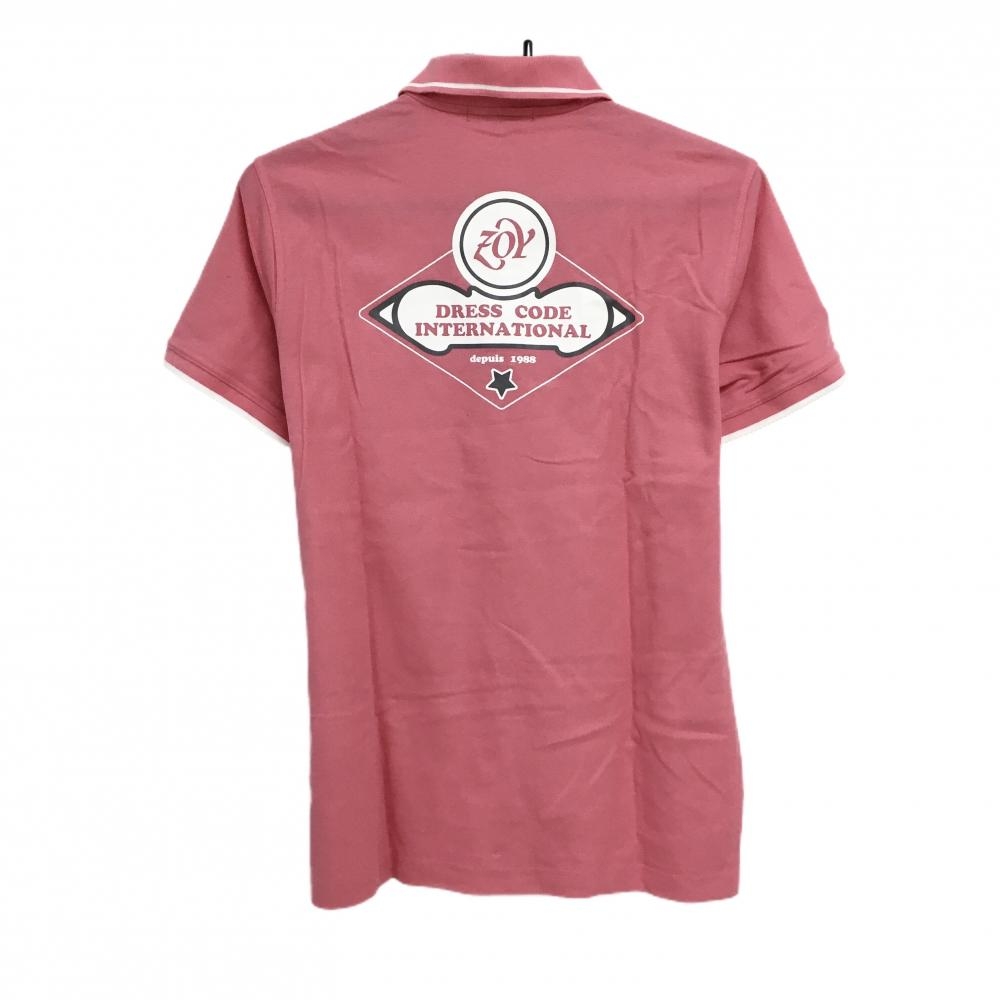 【超美品】ゾーイ 半袖ポロシャツ ピンク×白 襟・袖口ライン バックプリント メンズ 1(S) ゴルフウェア ZOY