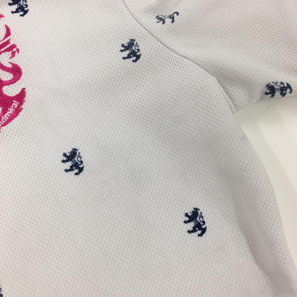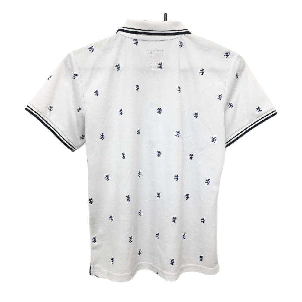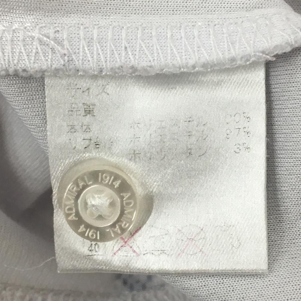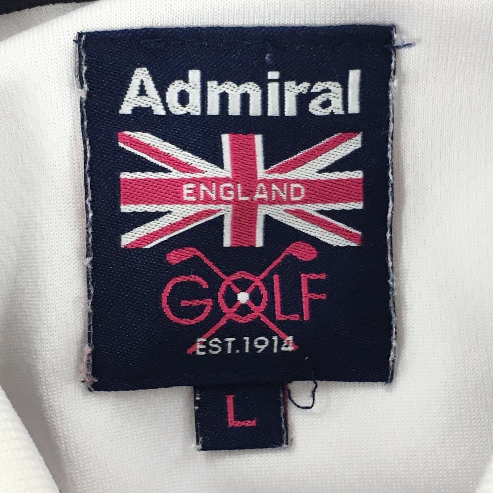 アドミラル 半袖ポロシャツ 白×ネイビー ロゴ総柄 襟・袖口ライン レディース L ゴルフウェア Admiral
