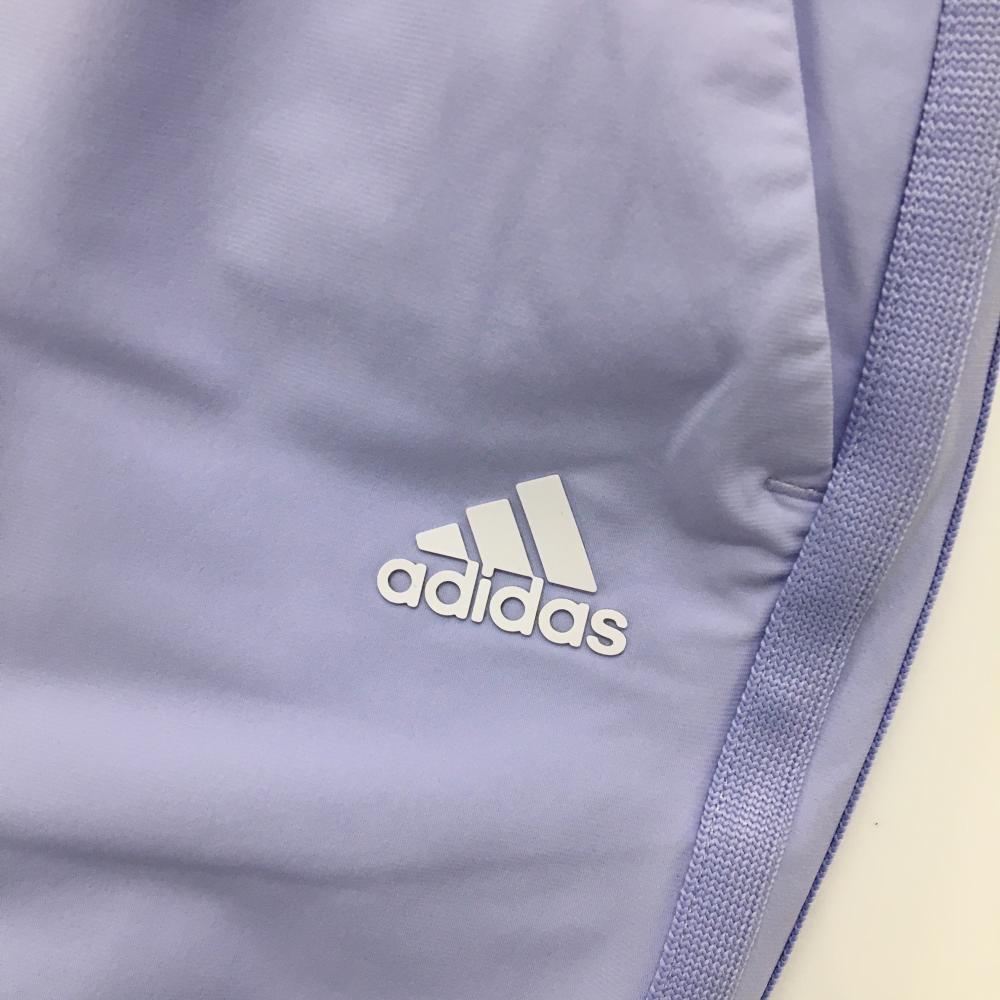 【超美品】アディダス ストレッチスカート ライトパープル×白 サイド3ライン ウエストゴム レディース L ゴルフウェア adidas