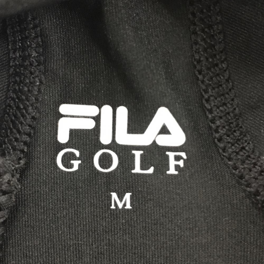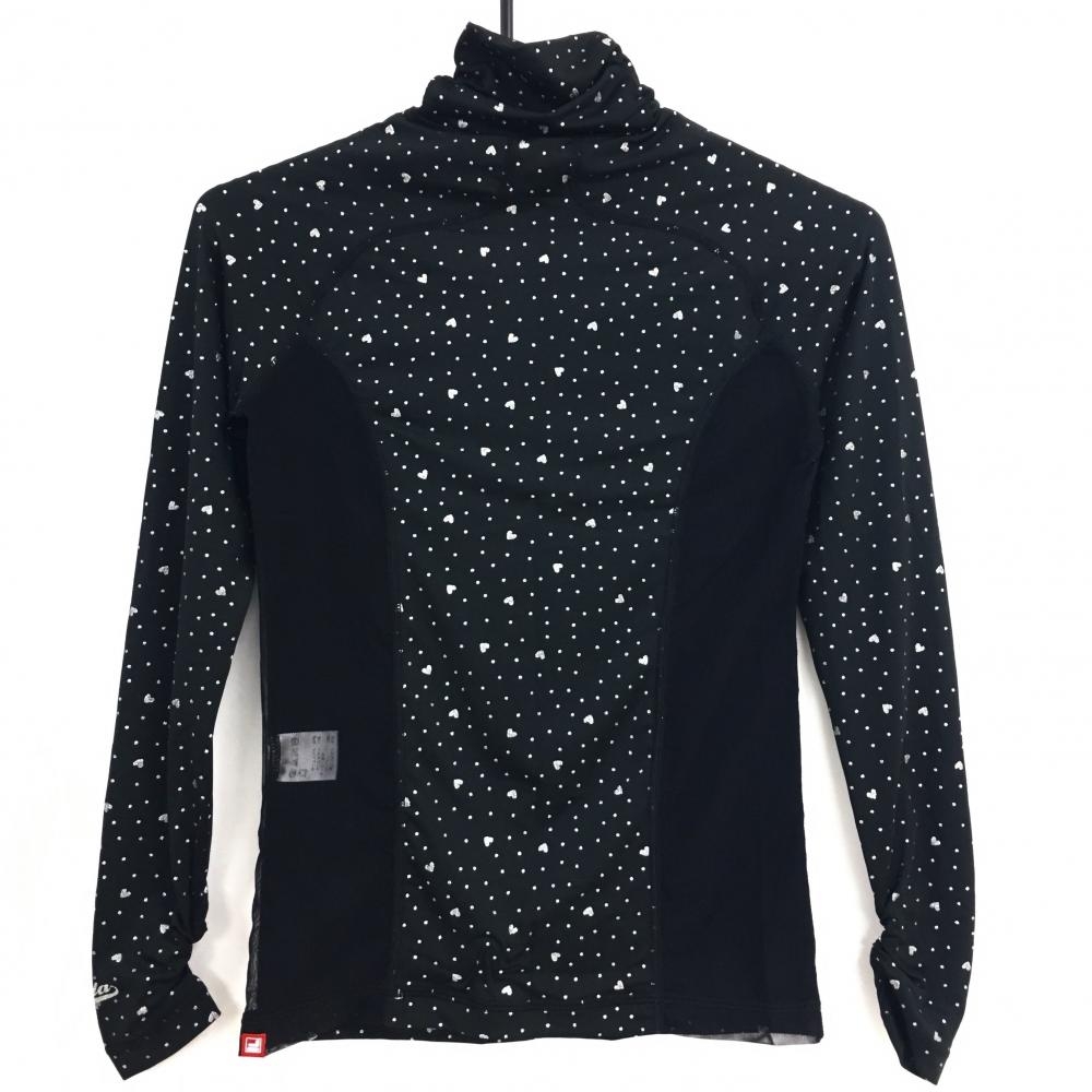 【超美品】フィラゴルフ ハイネックインナーシャツ 黒×シルバー ドット ハート サイドメッシュ レディース M ゴルフウェア FILA GOLF