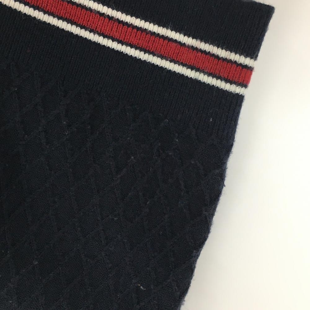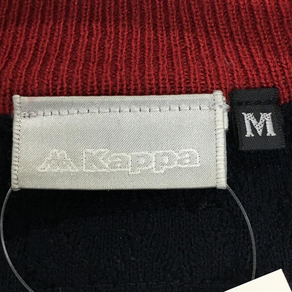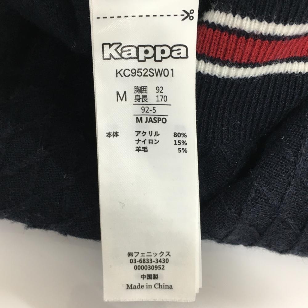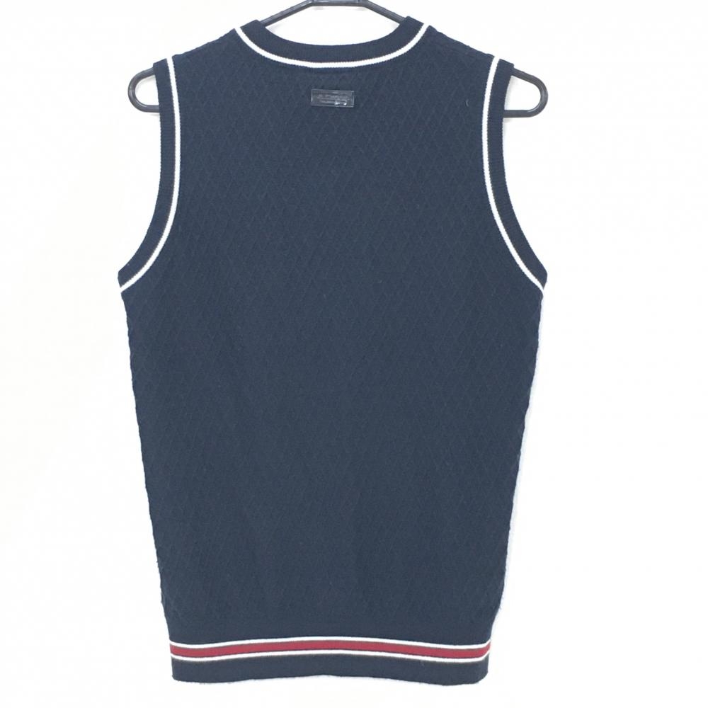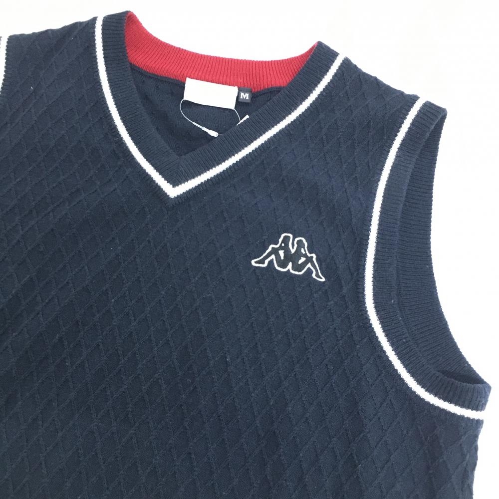 【美品】カッパ ニットベスト ネイビー×白 ダイヤ柄編み 羊毛混 Vネック メンズ M ゴルフウェア Kappa
