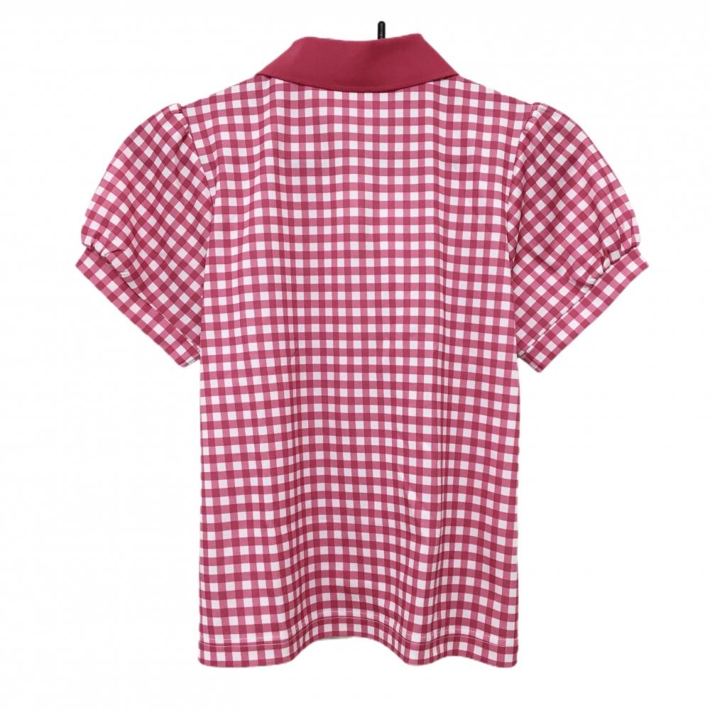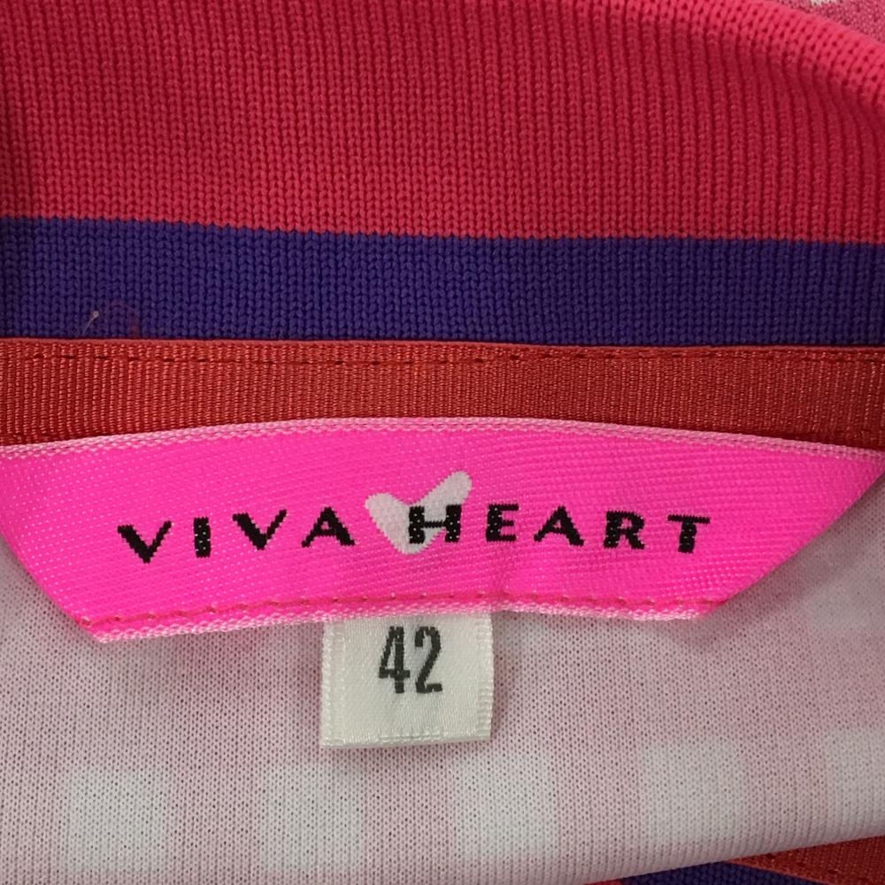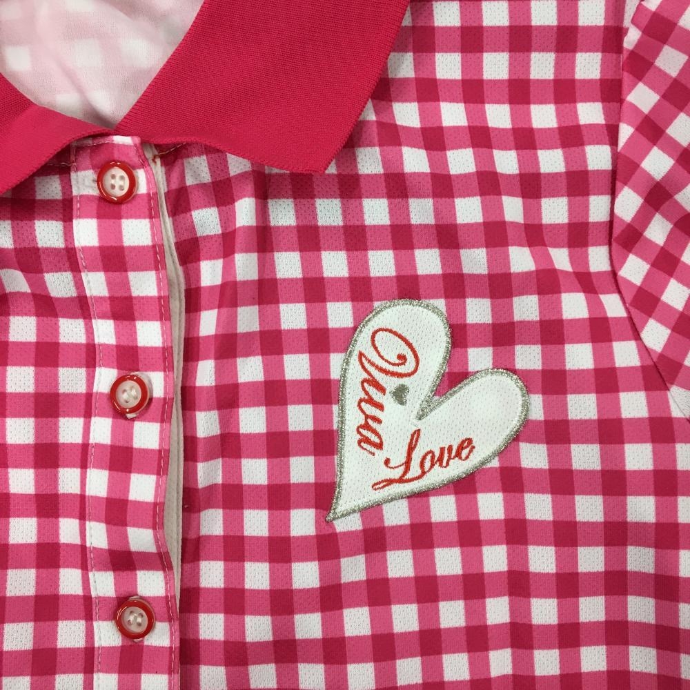 【超美品】ビバハート 半袖ポロシャツ ピンク×白 チェック ハートワッペン レディース 42(L) ゴルフウェア VIVA HEART