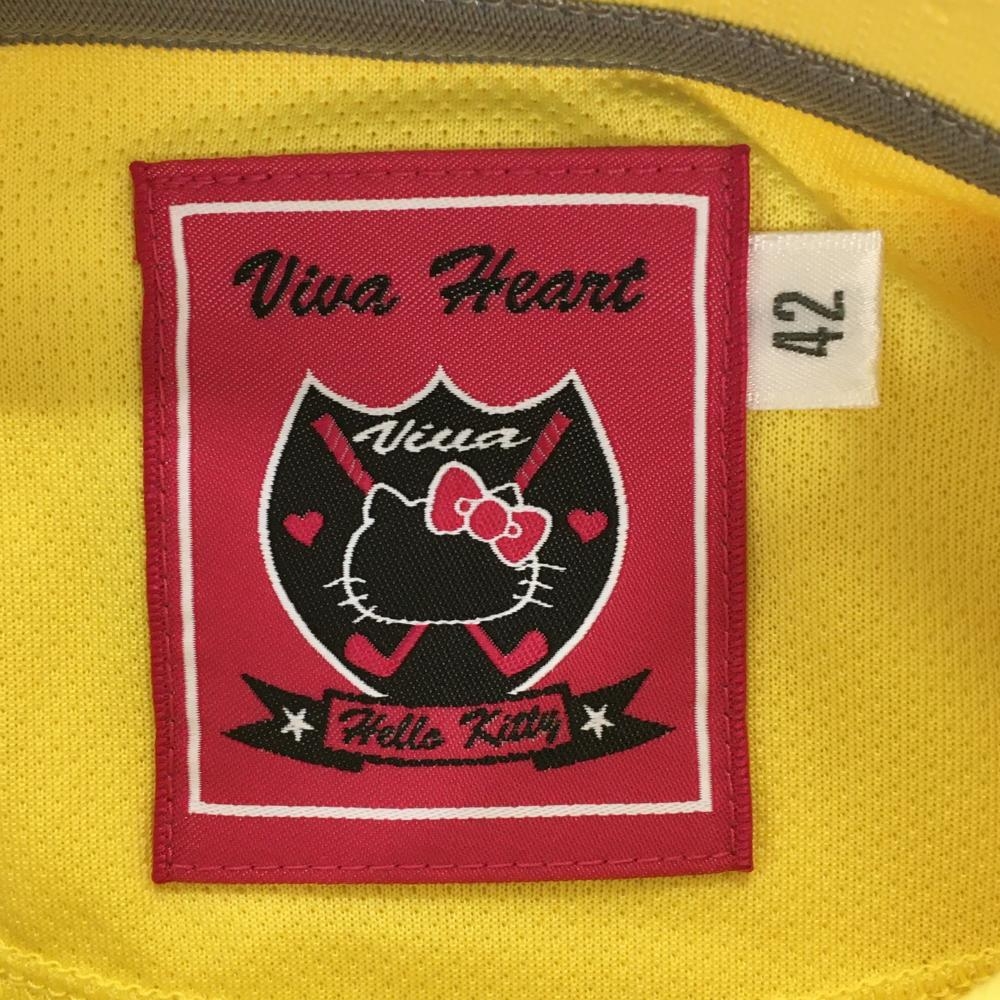 【超美品】ビバハート×ハローキティ 長袖ポロシャツ イエロー×白 重ね着風 レディース 42(L) ゴルフウェア VIVA HEART