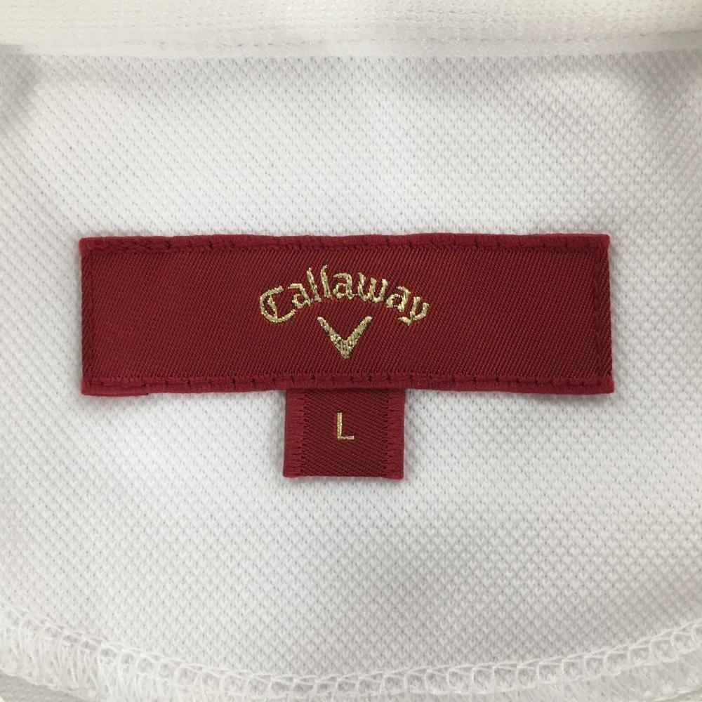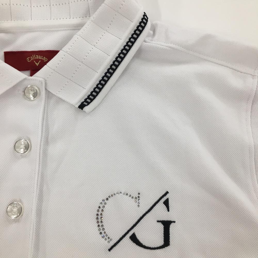 【超美品】キャロウェイ レッドレーベル 半袖ポロシャツ 白 襟ライン ラインストーンロゴ レディース L ゴルフウェア Callaway
