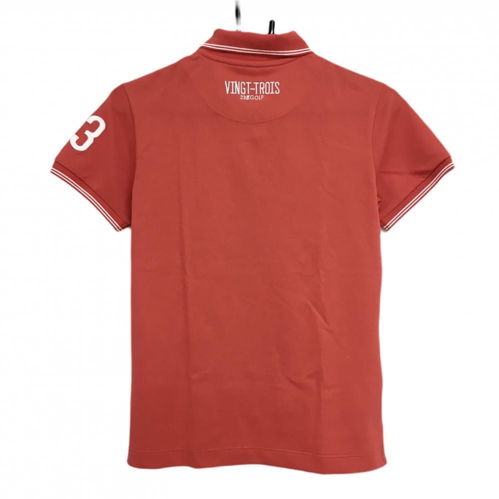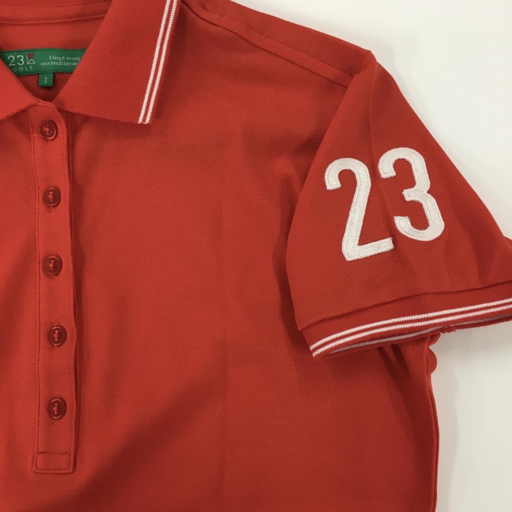 【超美品】23区ゴルフ 半袖ポロシャツ レッド×白 襟袖口ライン レディース 1(M) ゴルフウェア 23区