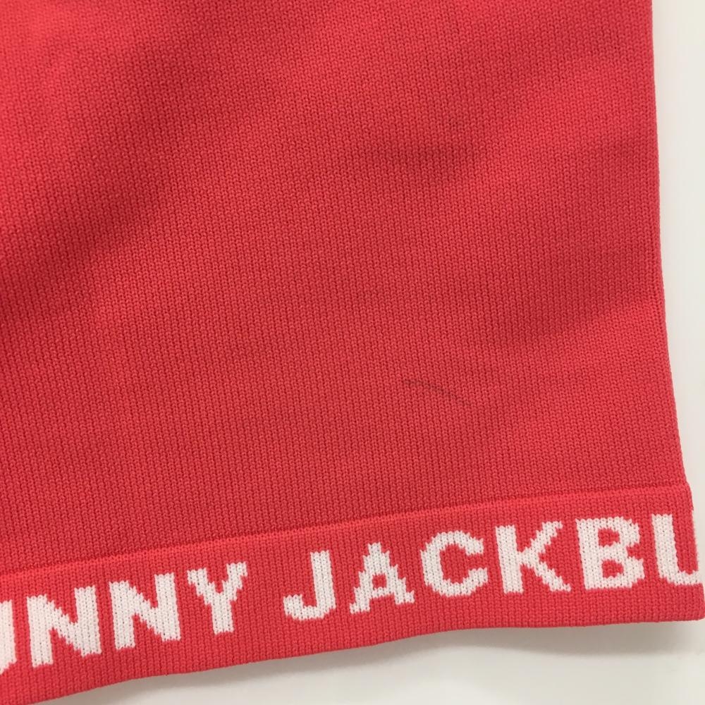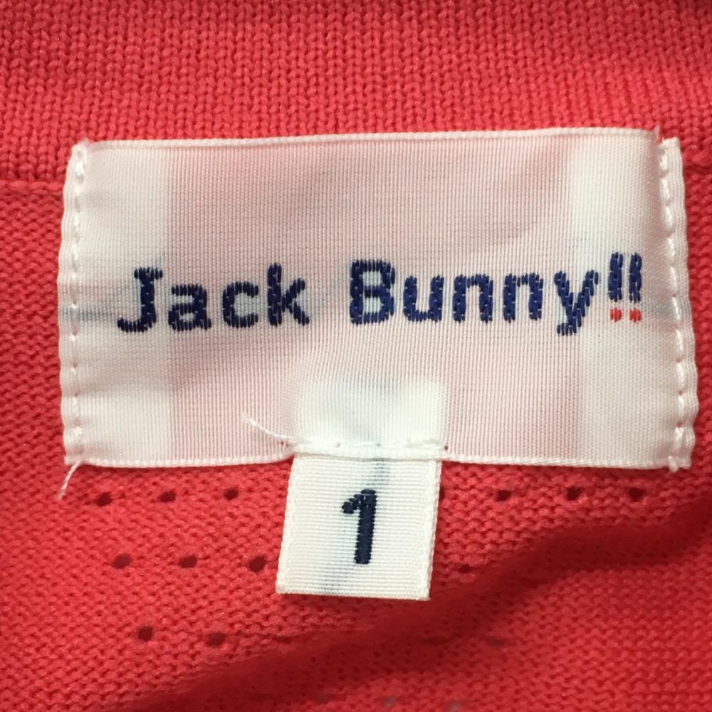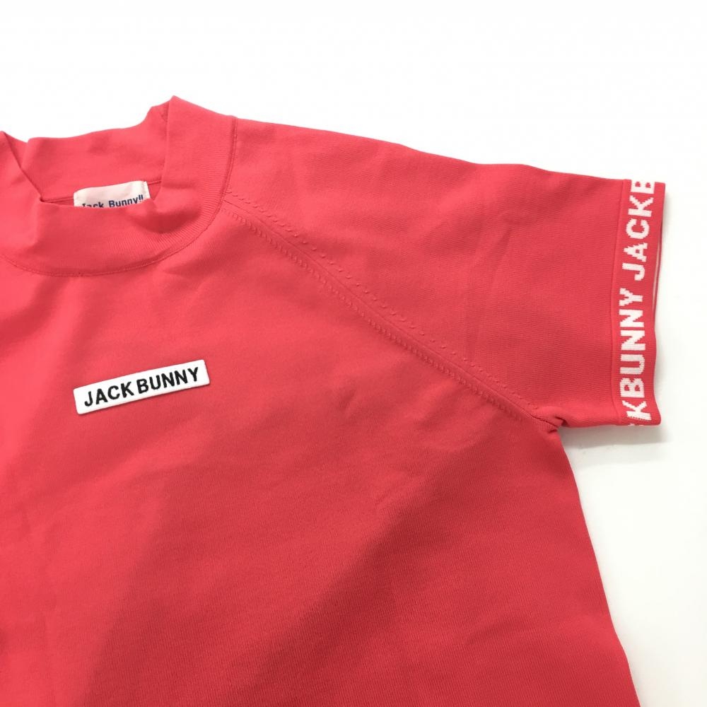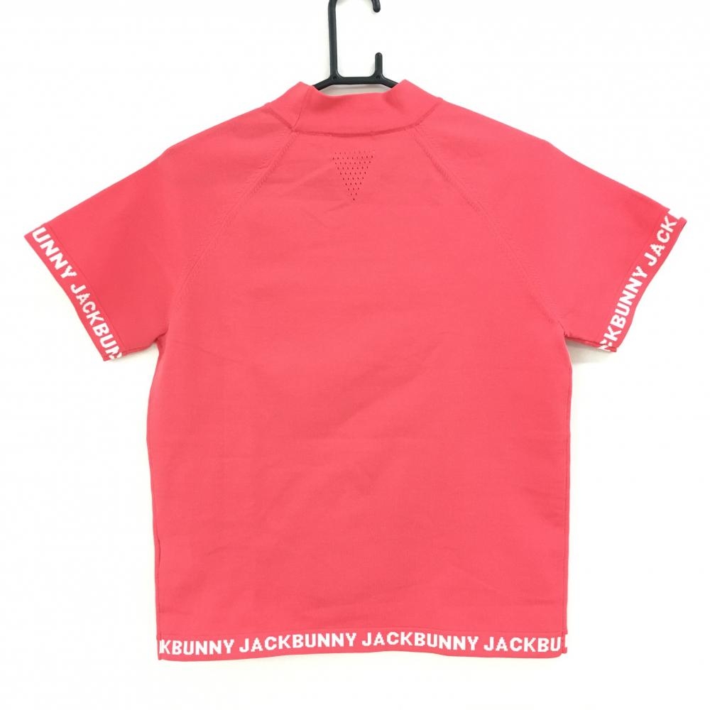 【美品】ジャックバニー 半袖ハイネックセーター サーモンピンク×白 ニット 薄手 レディース 1(M) ゴルフウェア Jack Bunny