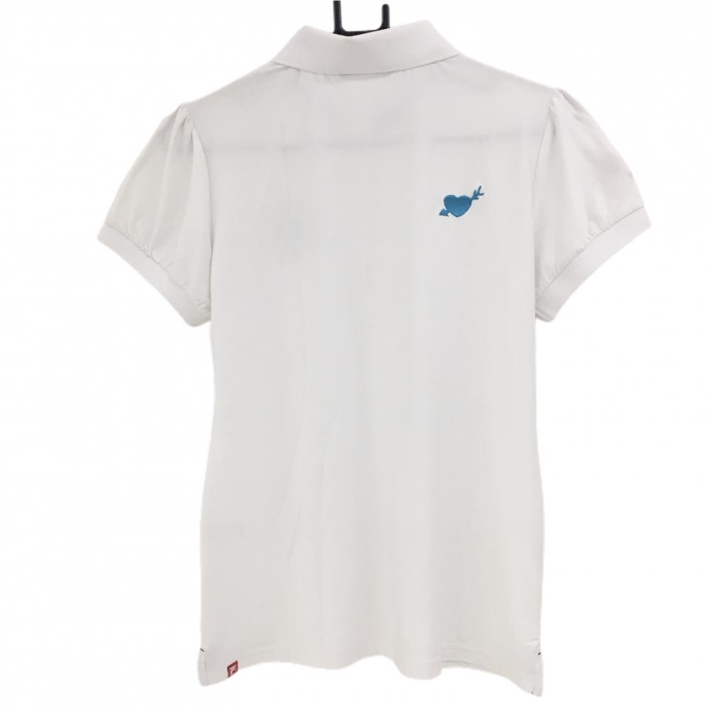 フィラゴルフ 半袖ポロシャツ 白×オレンジ ハート ロゴ刺しゅう レディース L ゴルフウェア FILA GOLF