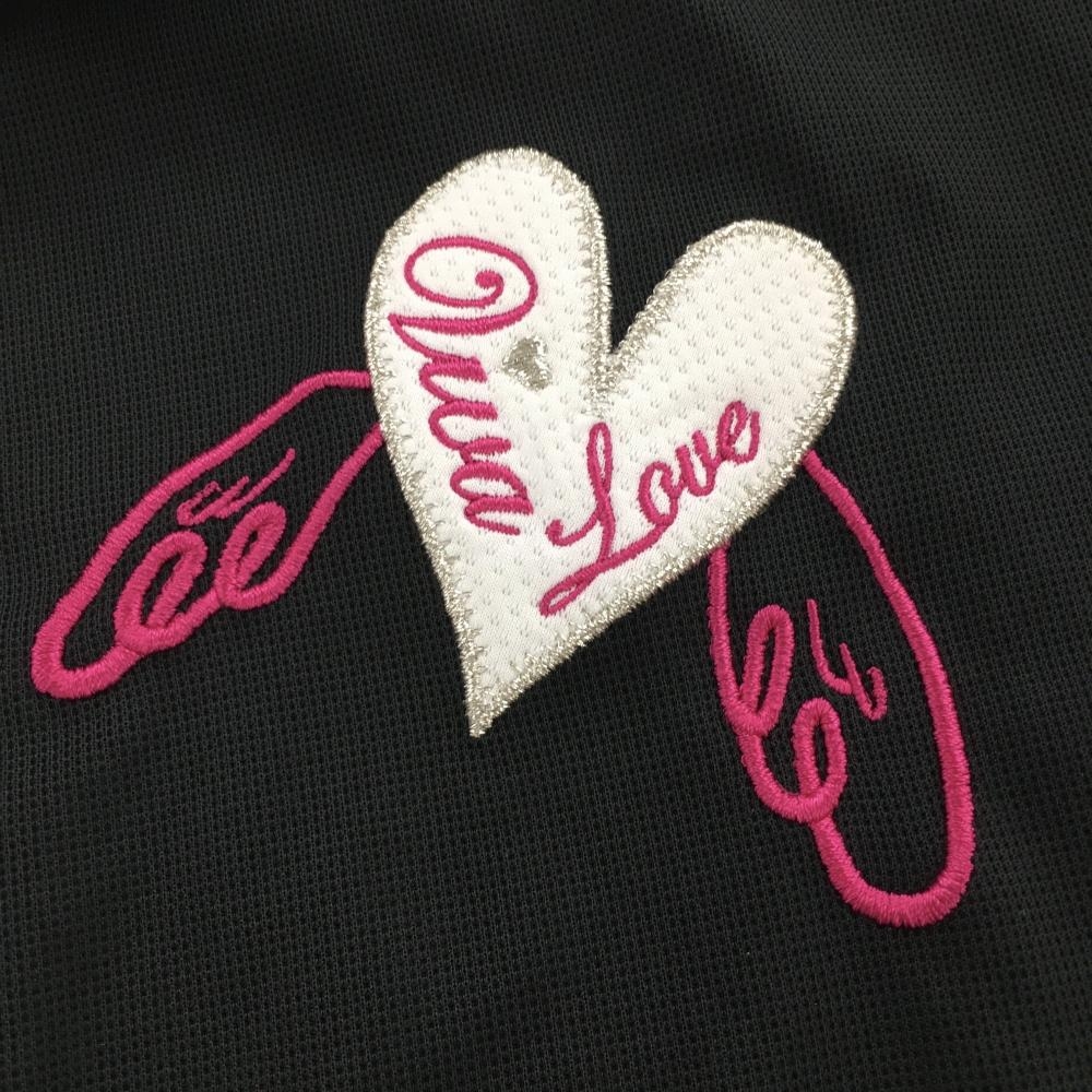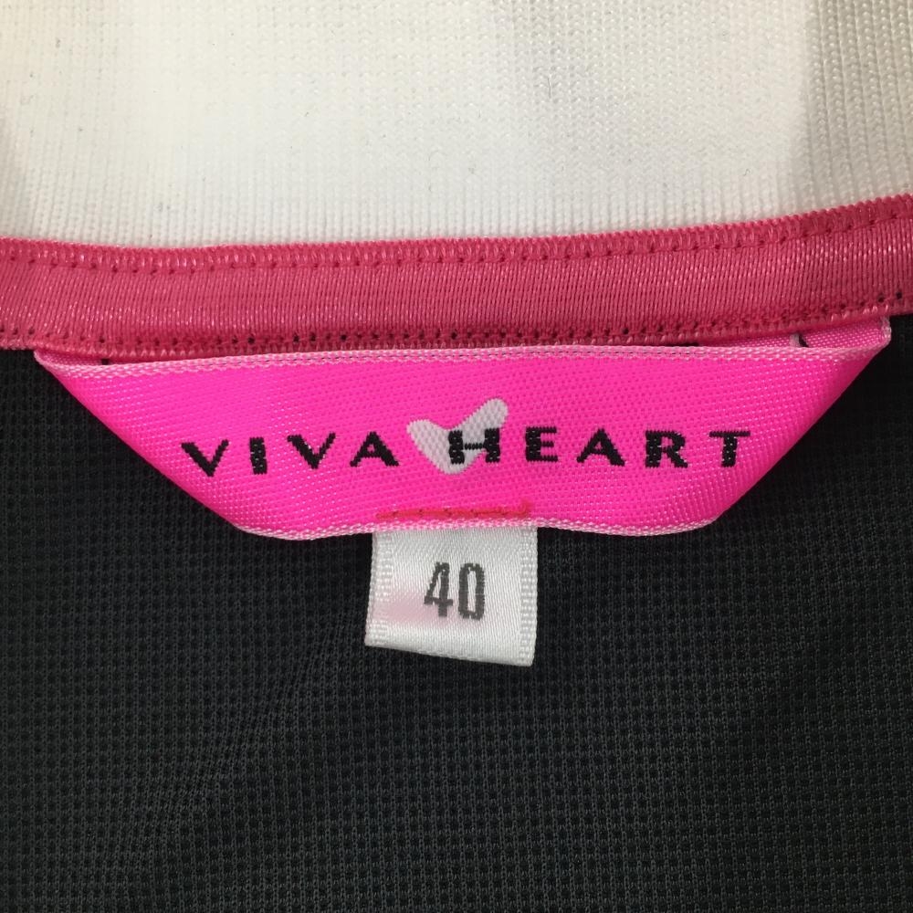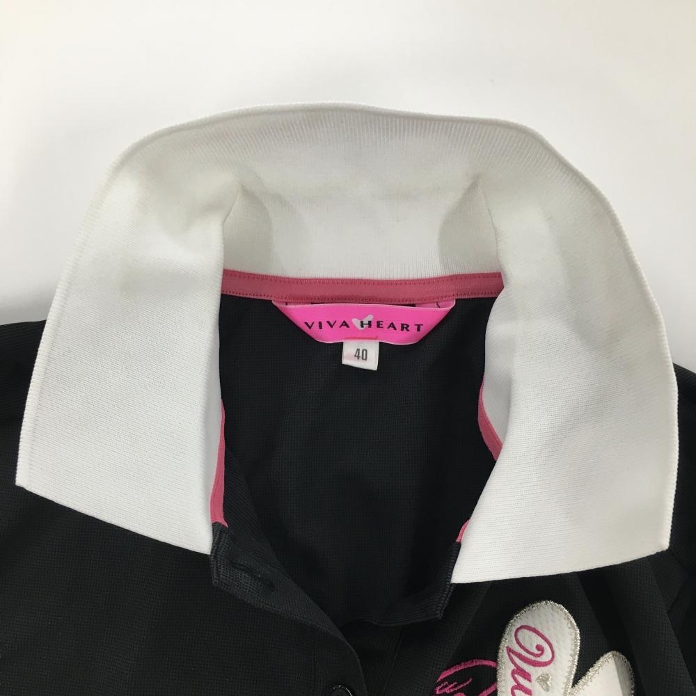 ビバハート 半袖ポロシャツ 黒×白 サイドドット ハート レディース 40(M) ゴルフウェア VIVA HEART