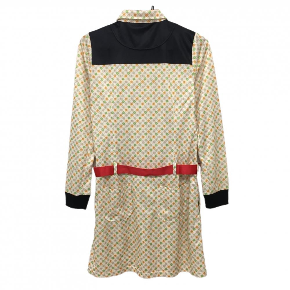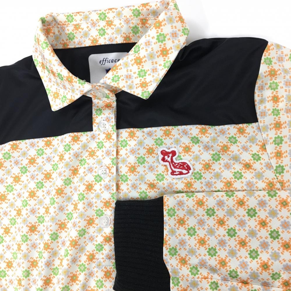 【超美品】エフィカス 長袖ポロワンピース アイボリー×ライトグリーン 花柄 ベルト付き レディース 3(L) ゴルフウェア efficace
