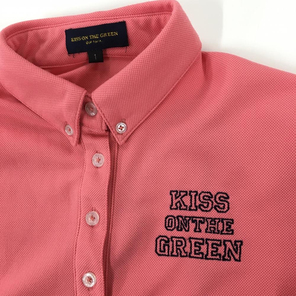 【美品】キスオンザグリーン 半袖ポロワンピース ピンク ボックスプリーツ ボタンダウン レディース 1(S) ゴルフウェア kiss on the green