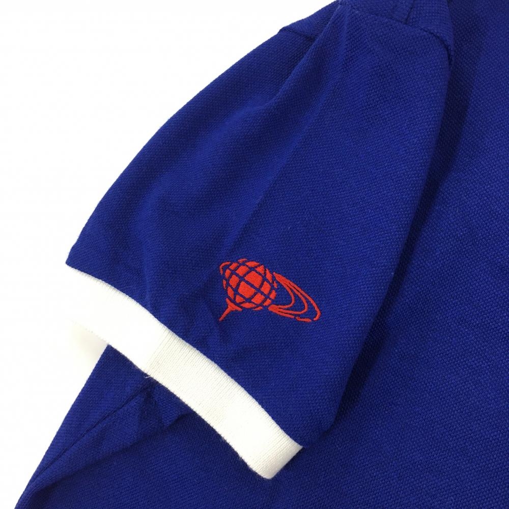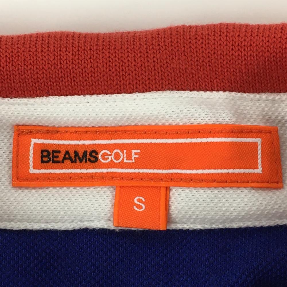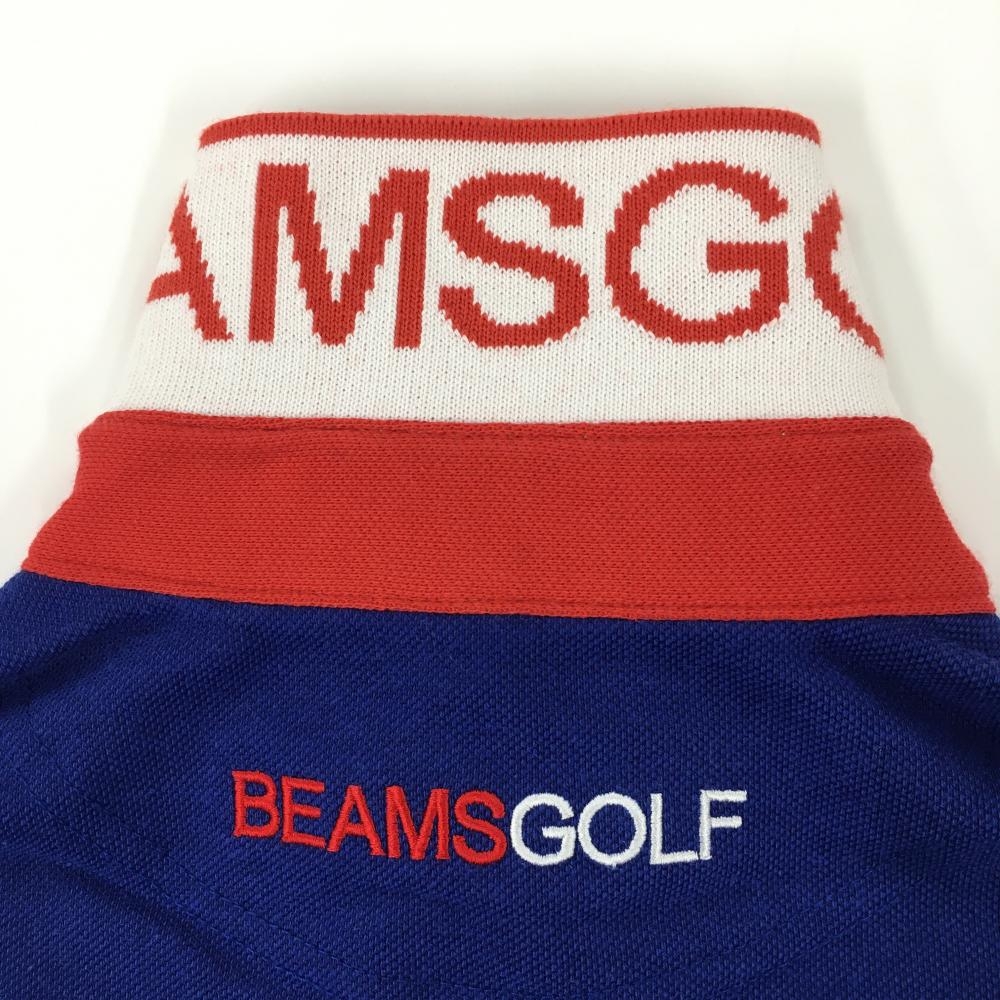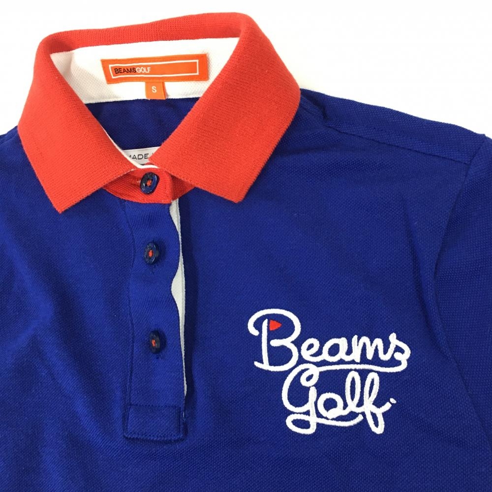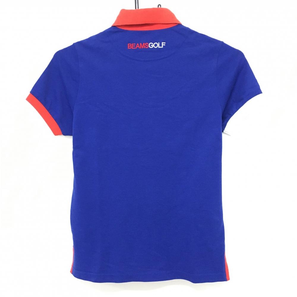 【美品】ビームスゴルフ 半袖ポロシャツ ブルー×レッド×白 バイカラー襟裏ロゴ レディース S ゴルフウェア BEAMS GOLF