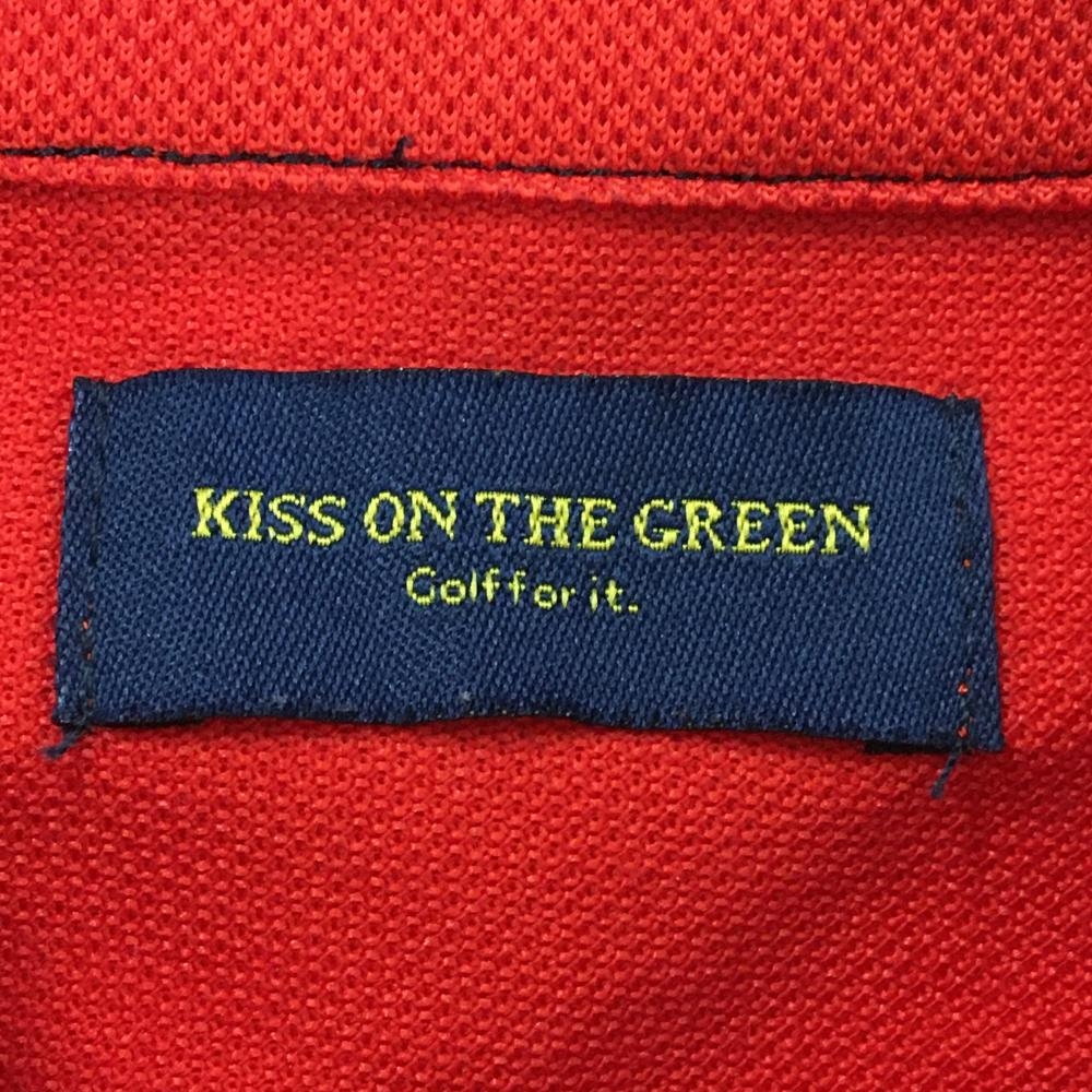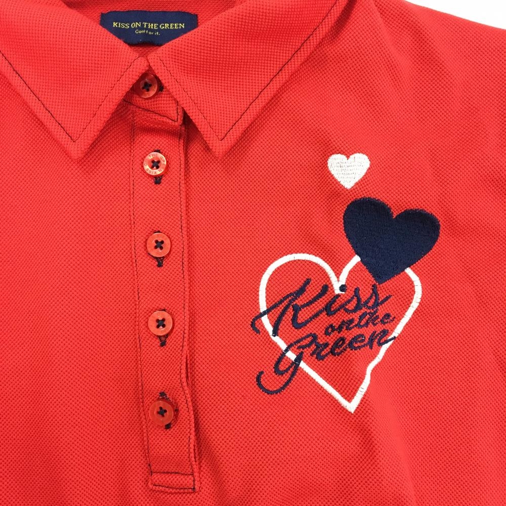 【超美品】キスオンザグリーン 長袖ポロシャツ レッド×ネイビー ロゴ刺しゅう ハート レディース 3(L) ゴルフウェア kiss on the green