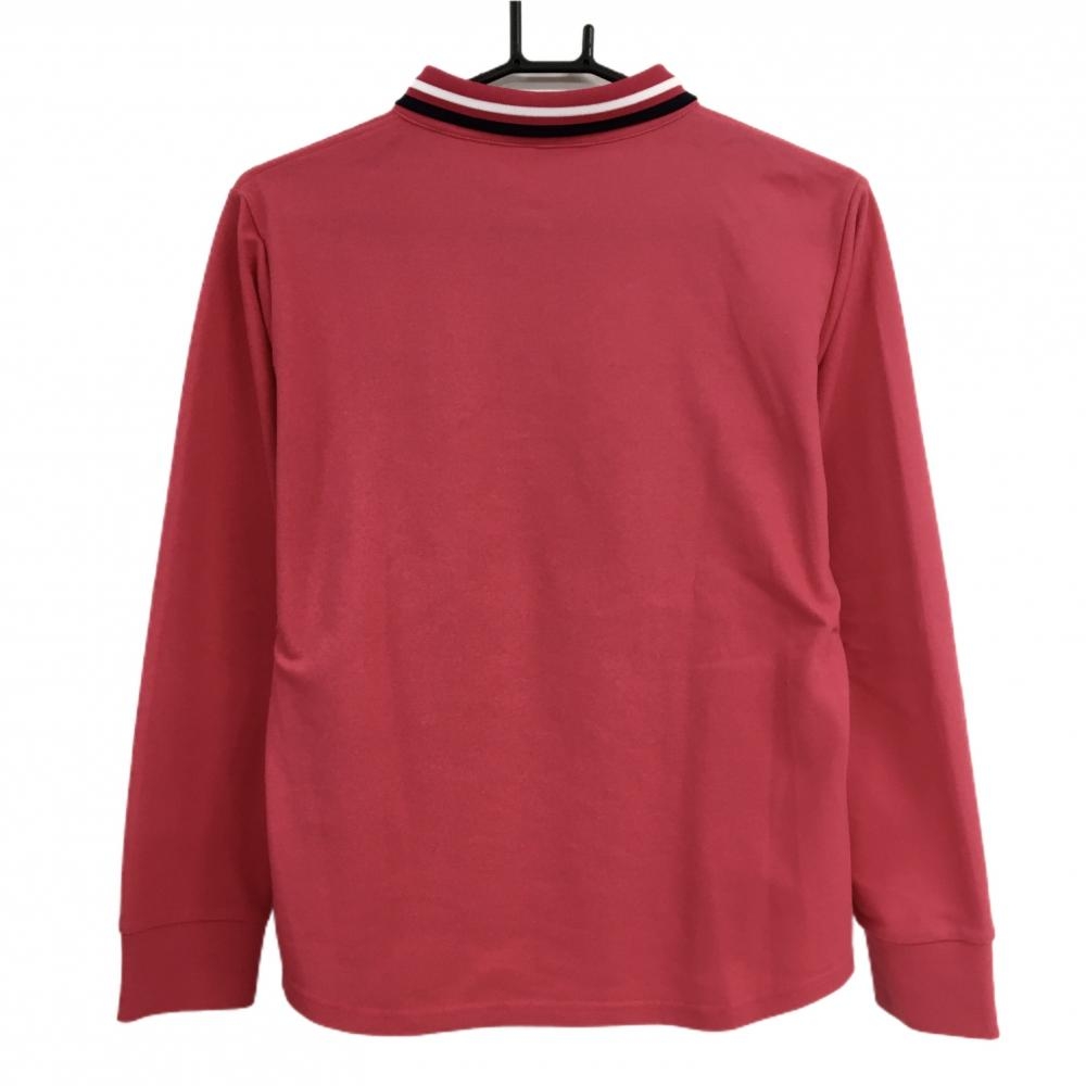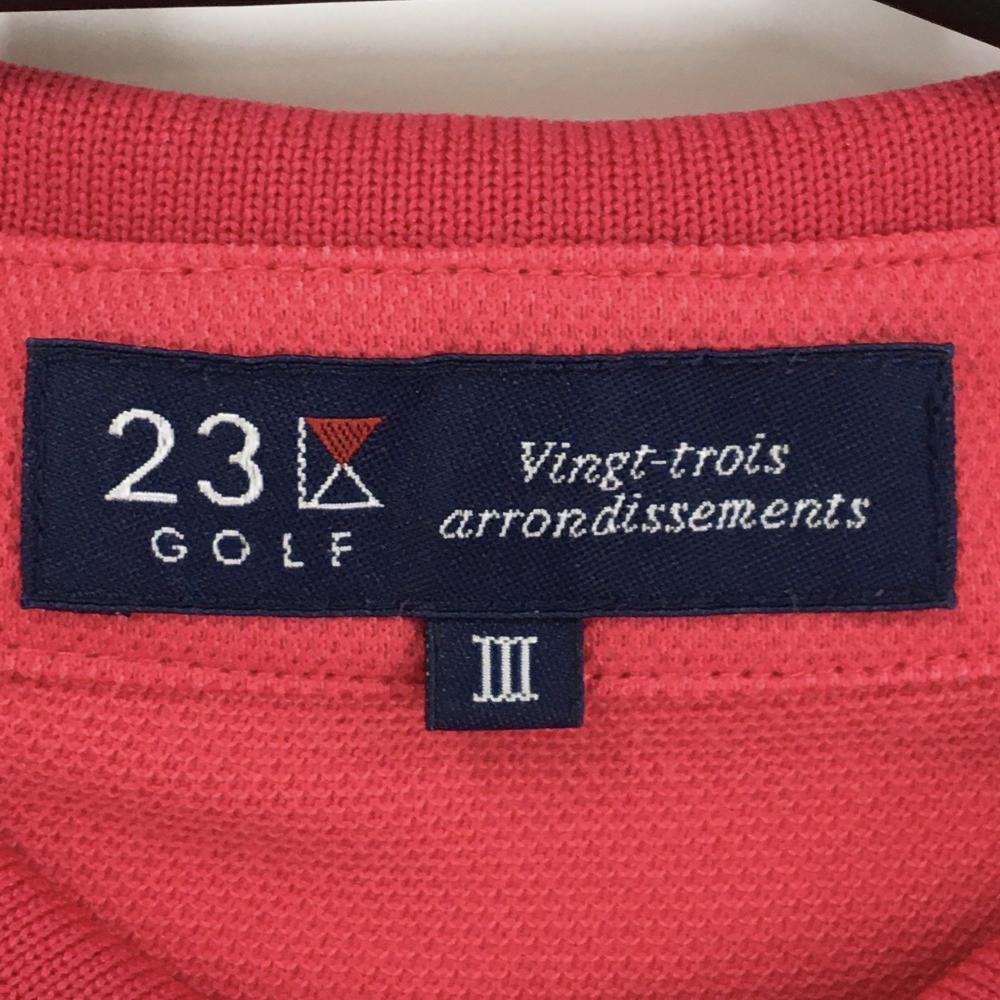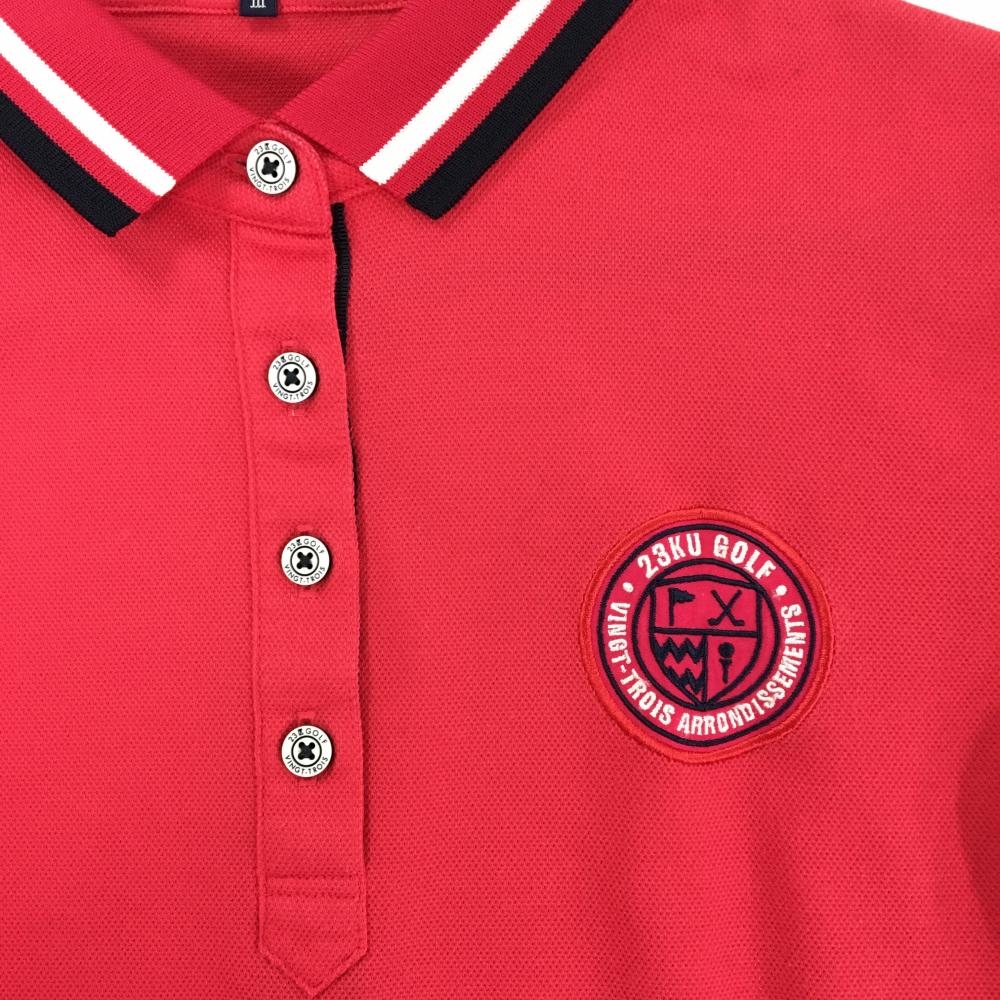 【美品】23区ゴルフ 長袖ポロシャツ レッド×ネイビー 襟ライン ワッペン レディース III(XL) ゴルフウェア 23区