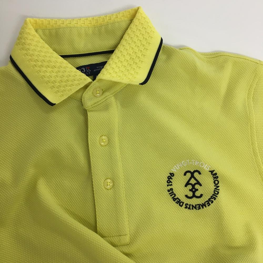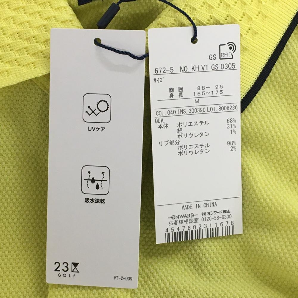 【新品】23区ゴルフ 半袖ポロシャツ イエロー×ネイビー 胸元ロゴ UVケア 吸水速乾 メンズ M ゴルフウェア 2025年モデル 23区