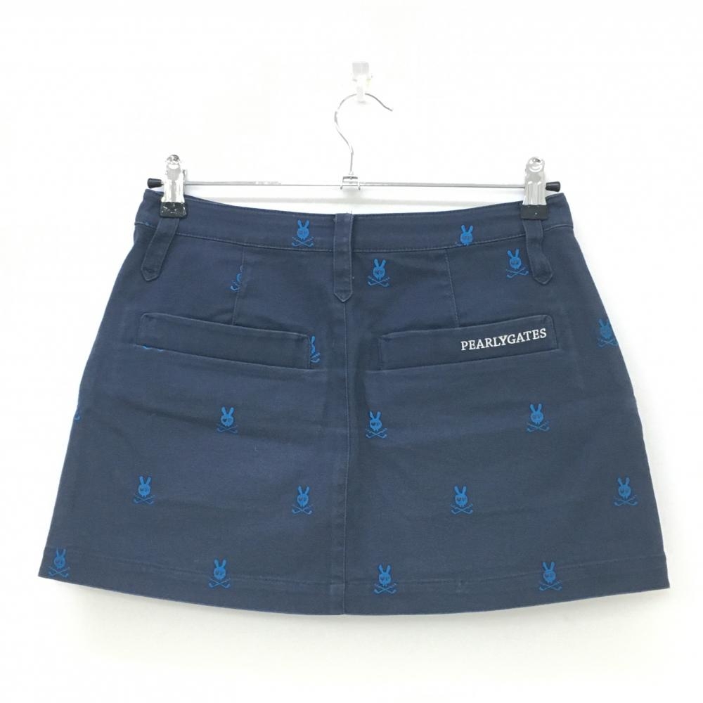 パーリーゲイツ スカート ネイビー×ブルー スカルラビット刺しゅう 総柄 レディース 0(S) ゴルフウェア PEARLY GATES