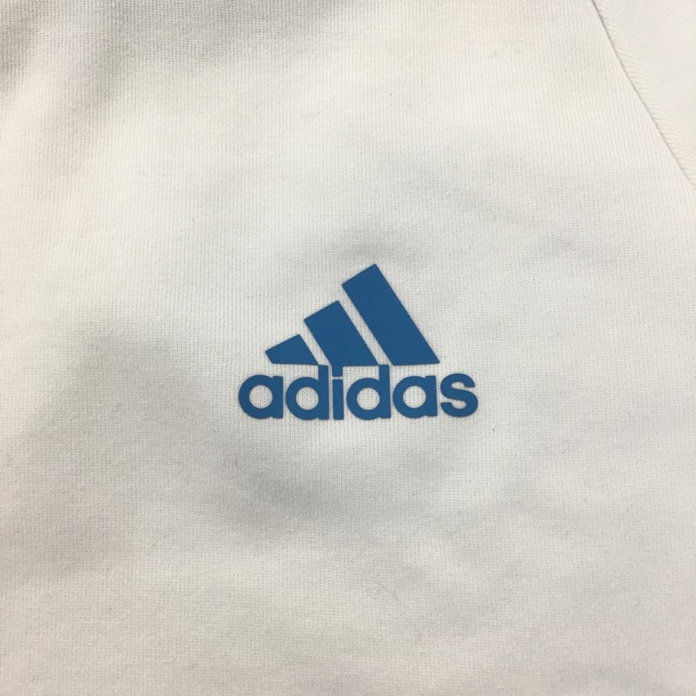 アディダス トレーナー 白×ライトブルー ロゴプリント ジップポケット メンズ M ゴルフウェア adidas