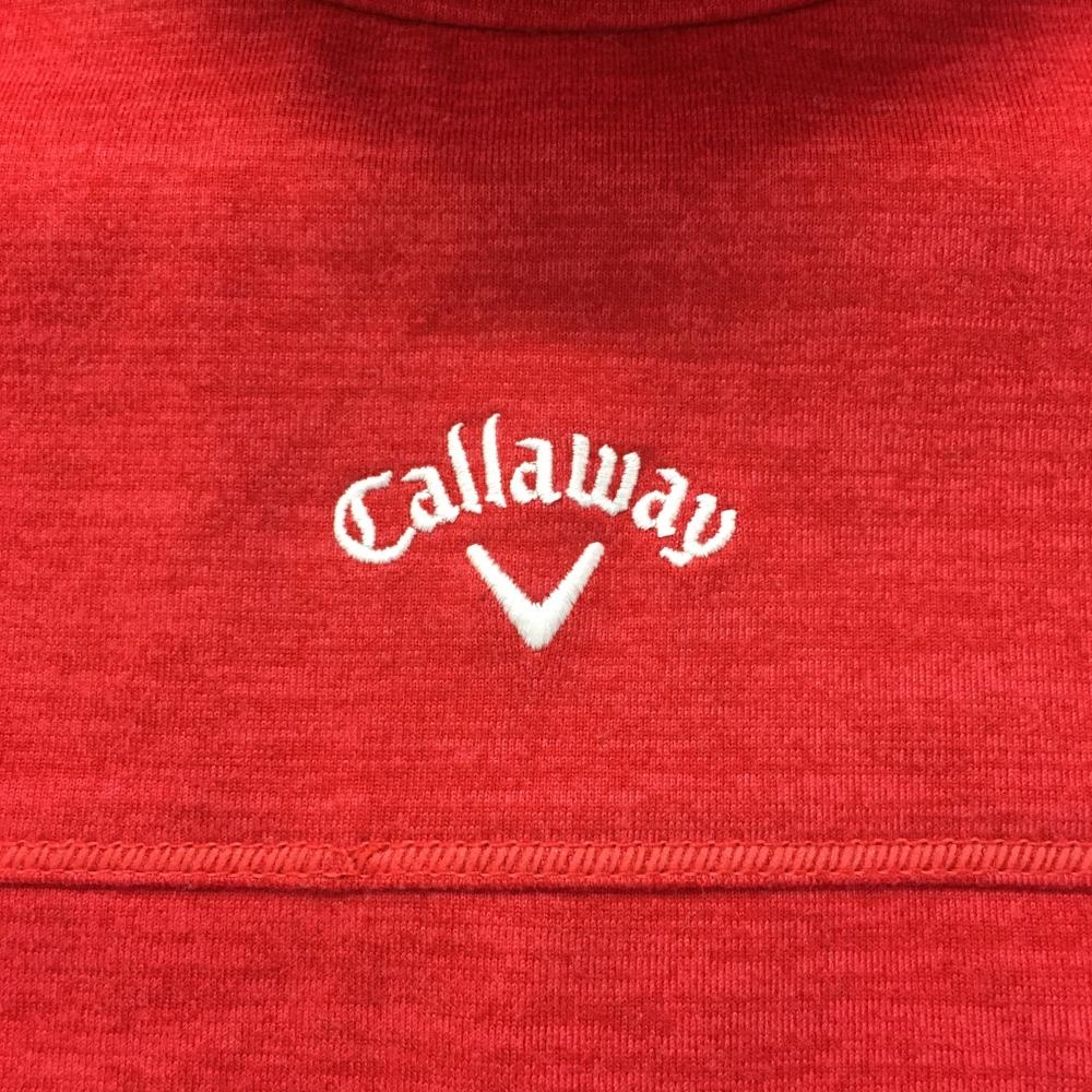 【超美品】キャロウェイ 長袖ハイネックシャツ 杢レッド ロゴ刺しゅう メンズ L ゴルフウェア Callaway