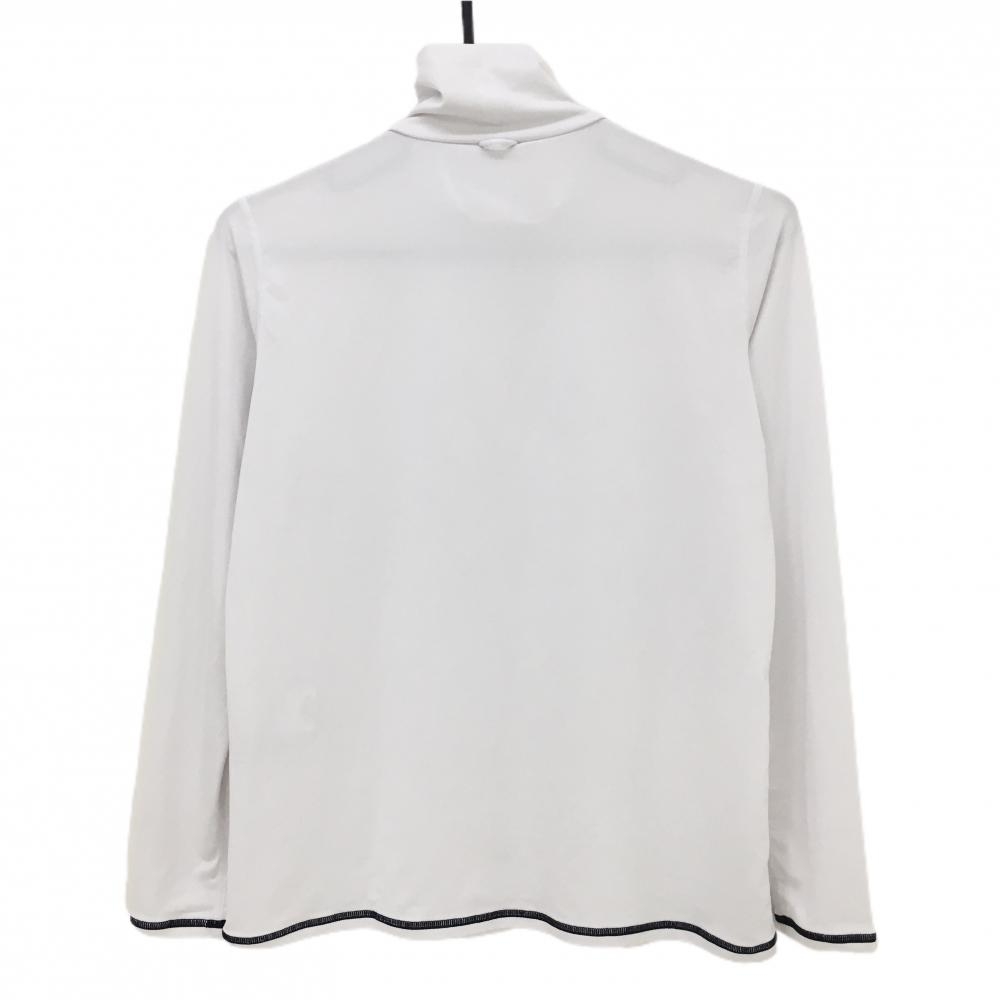 【超美品】フィラゴルフ ハイネックインナーシャツ 白×ネイビー 無地 ステッチ レディース LL ゴルフウェア FILA GOLF
