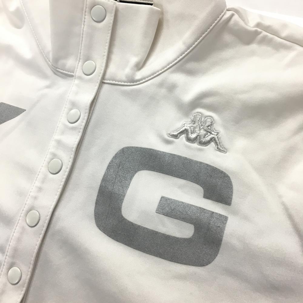 カッパ 長袖ハイネックシャツ 白 ロゴシルバー スナップボタン 裏微起毛 レディース M ゴルフウェア Kappa