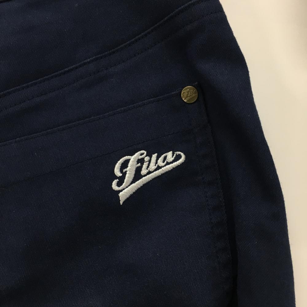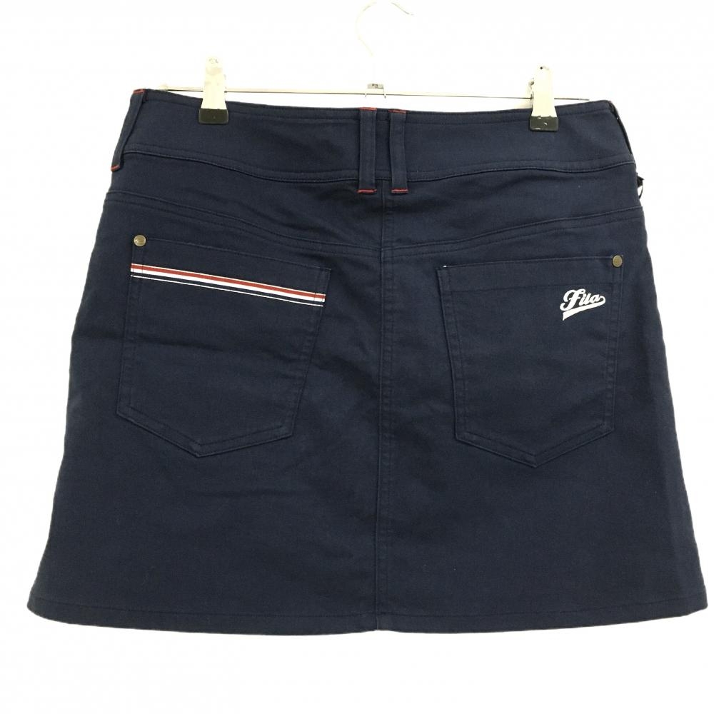 【美品】フィラゴルフ スカート ネイビー バックロゴ刺しゅう トリコロール 色褪せ少 レディース ゴルフウェア FILA GOLF