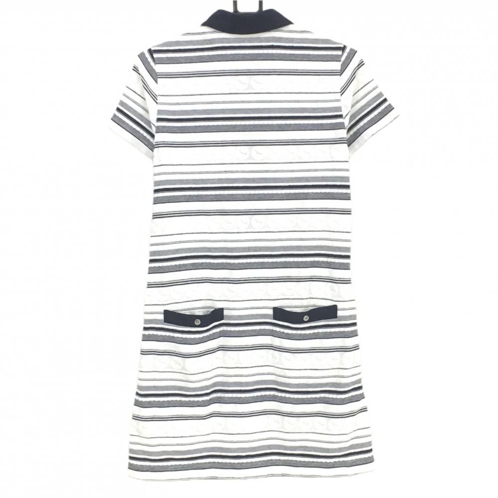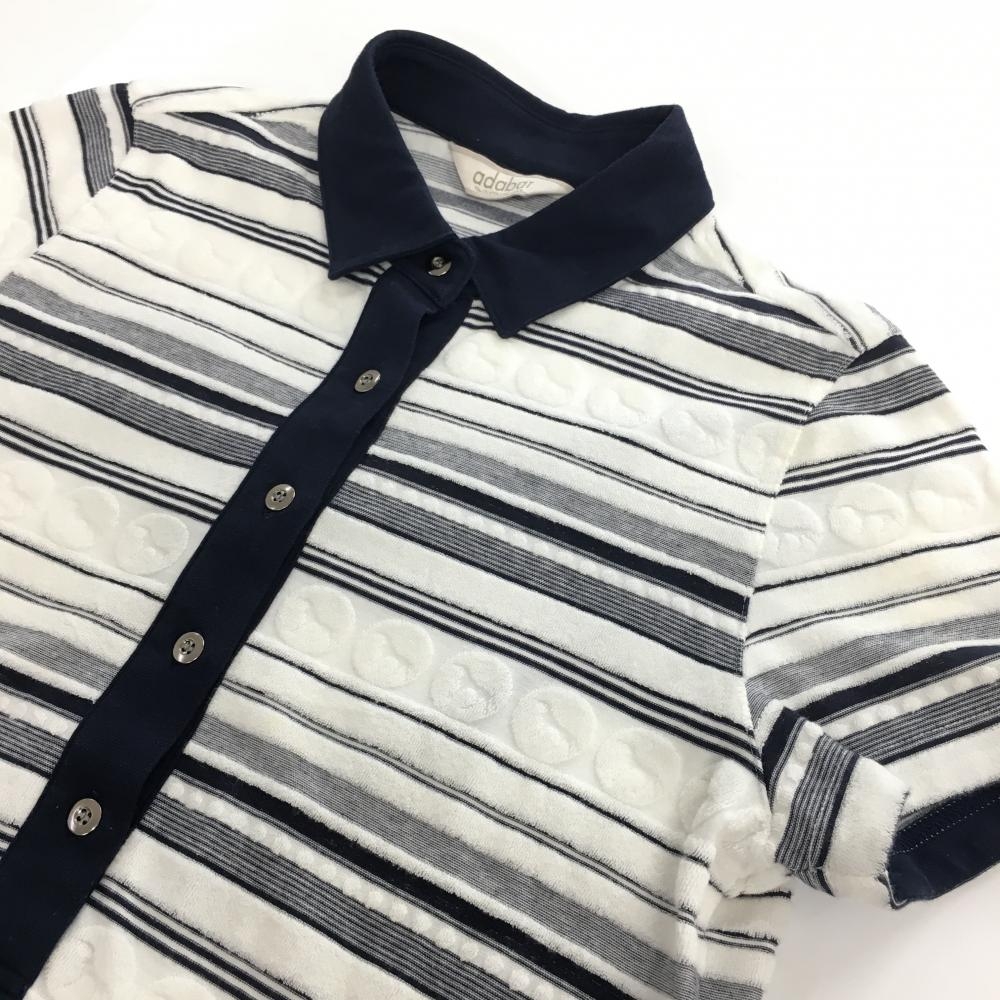 アダバット 半袖ポロワンピース 白×ネイビー ボーダー ロゴライン パイル地 レディース 38(M) ゴルフウェア adabat