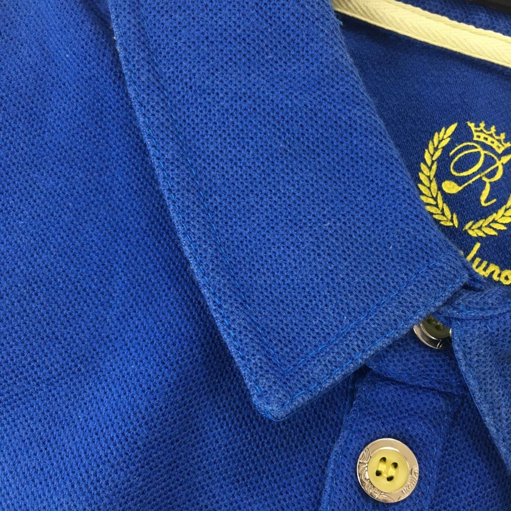 ラッセルノ 半袖ポロシャツ ブルー×イエロー 後ビッグスカル メンズ L ゴルフウェア RUSSELUNO