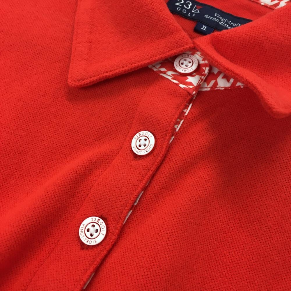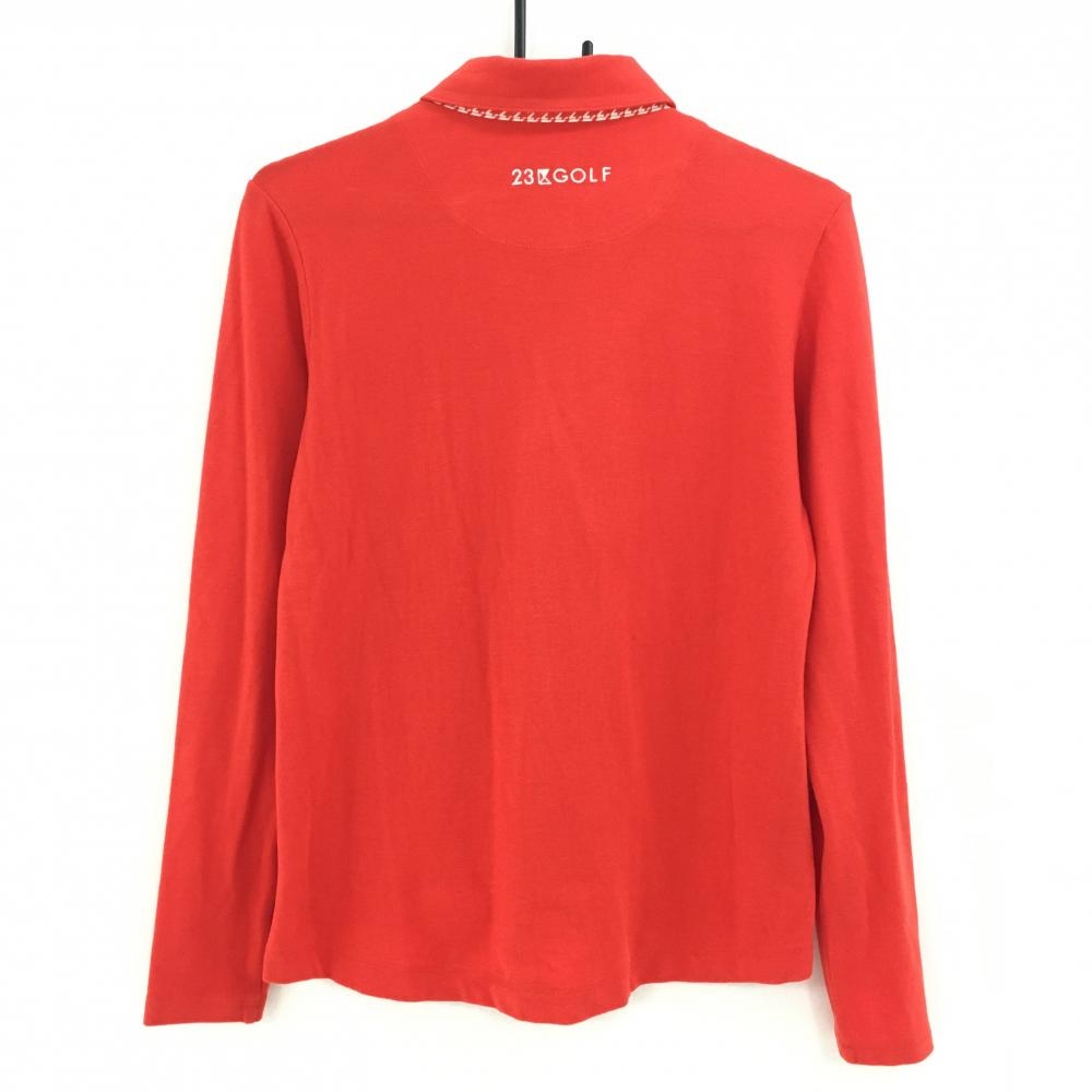 23区ゴルフ 長袖ポロシャツ レッド 表微起毛 アクリル混 ラインストーン レディース Ⅱ(L) ゴルフウェア 23区