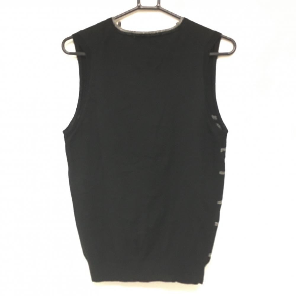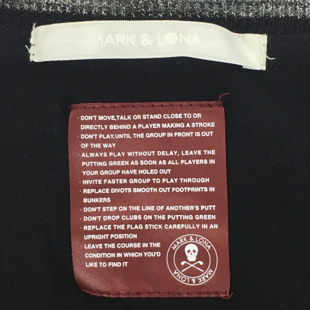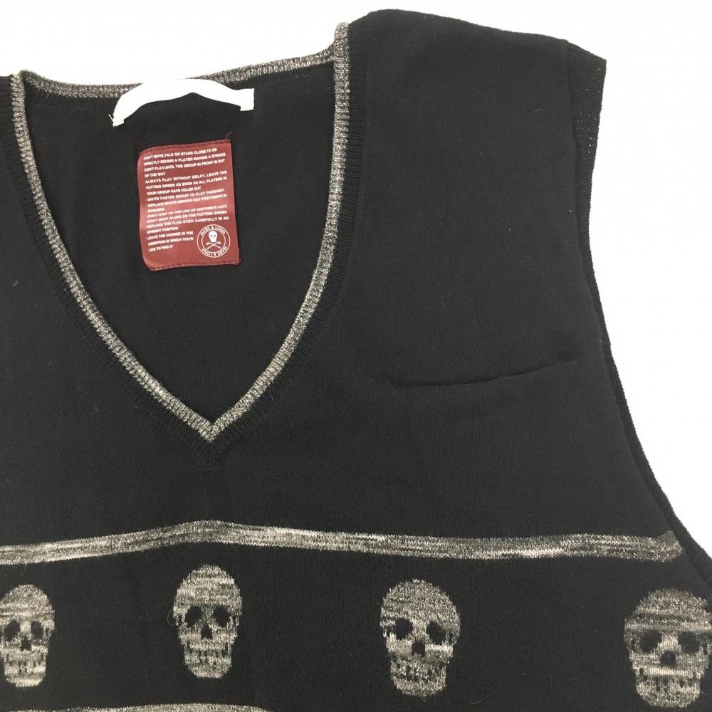 【超美品】マークアンドロナ ニットベスト 黒×シルバー ボーダー×スカル Vネック メンズ ゴルフウェア MARK&LONA