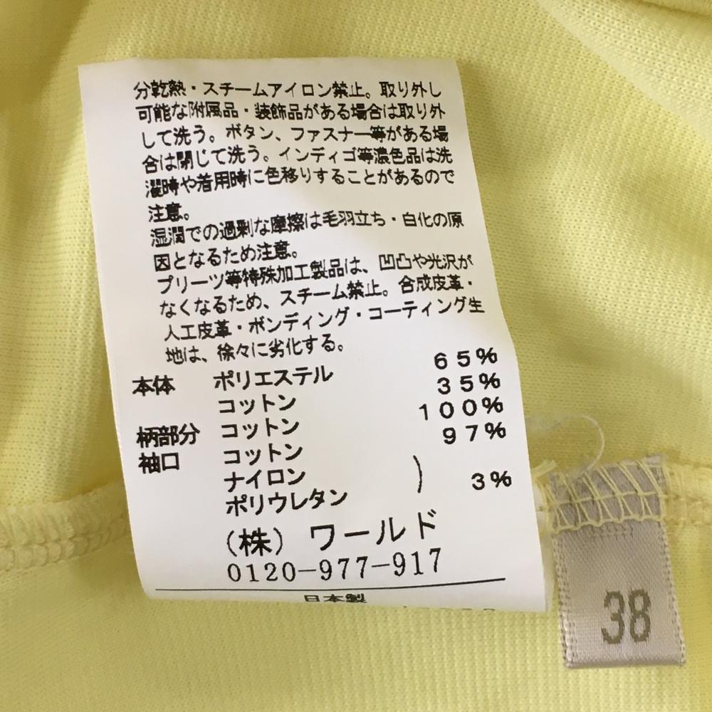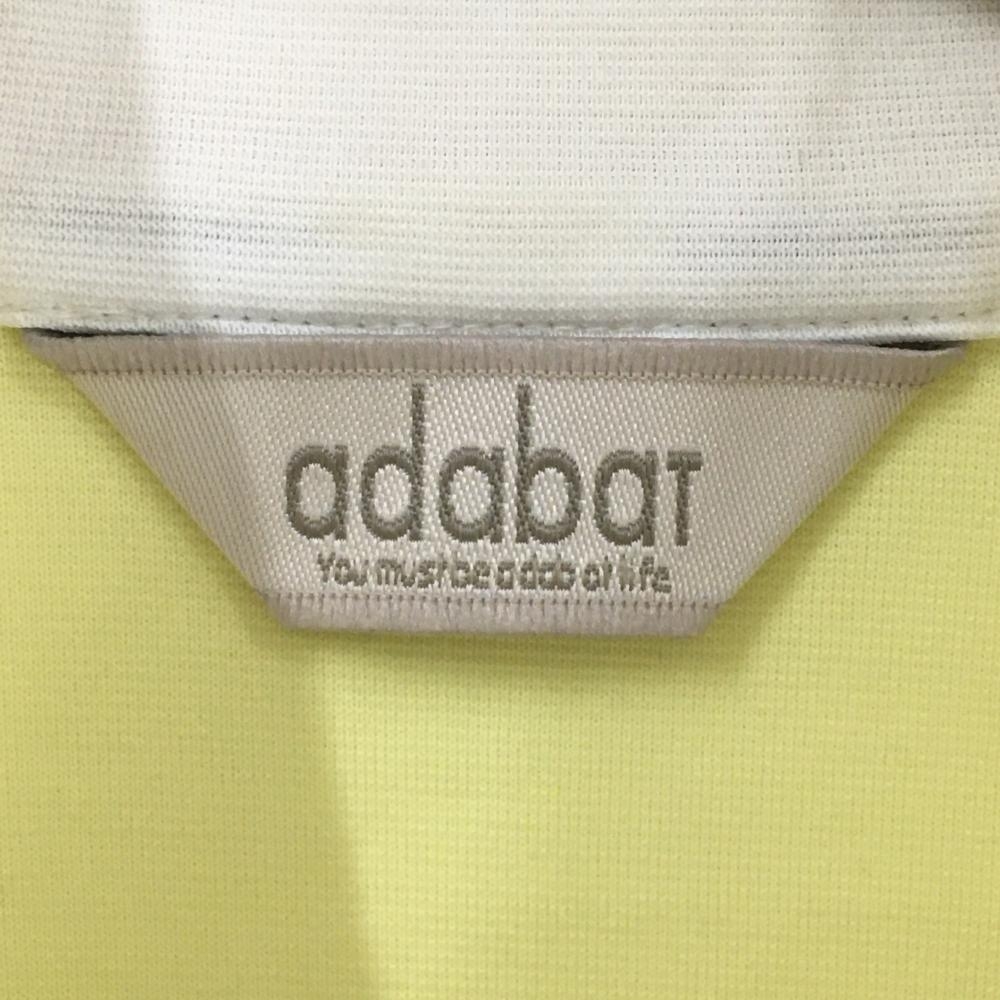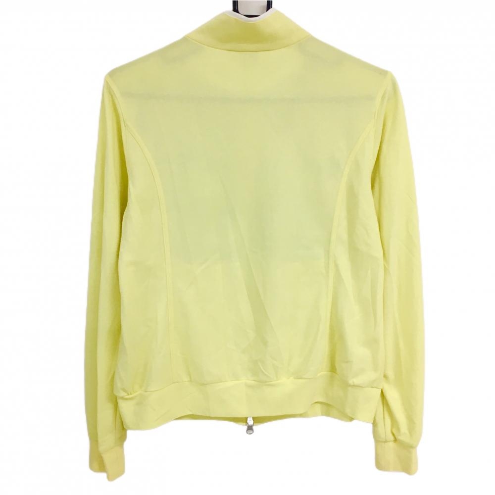【美品】アダバット 長袖ハイネックシャツ ライトイエロー×グリーン 前身頃総柄 ダブルジップ レディース 38(M) ゴルフウェア adabat