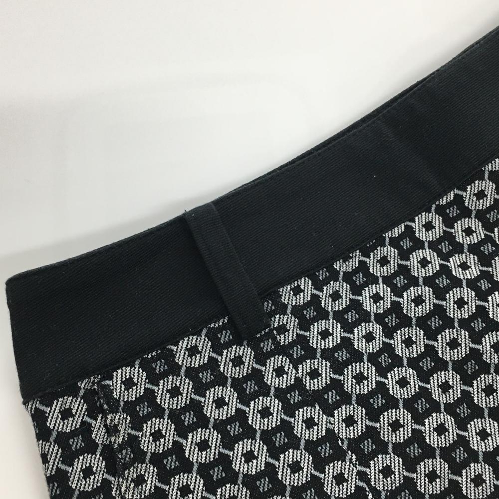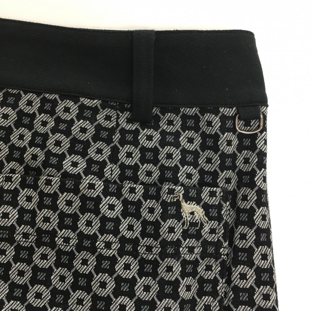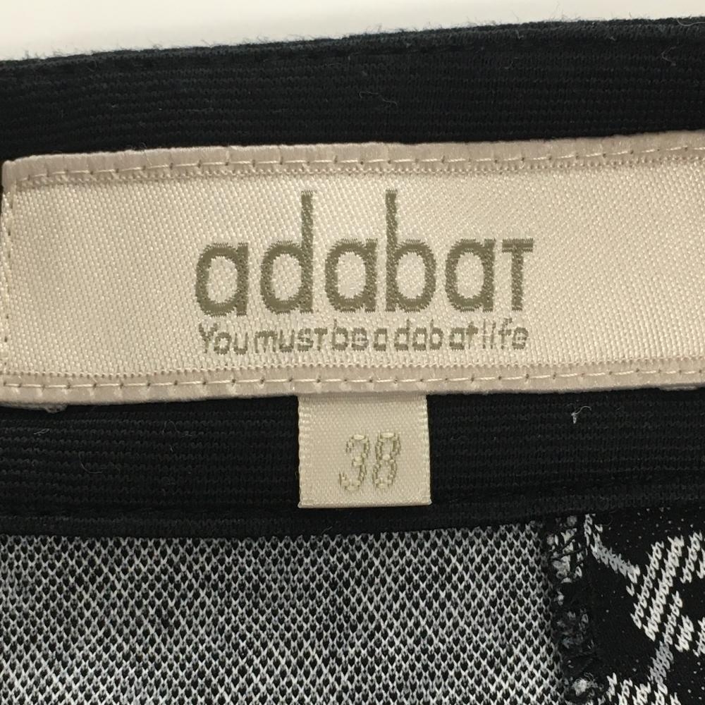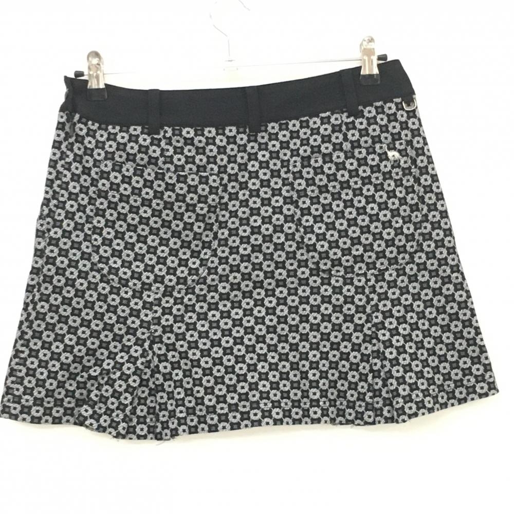 アダバット ボックスプリーツスカート 黒×白 総柄 バックロゴ ポケット口汚れ ベルト部色褪せ少 レディース 38(M) ゴルフウェア adabat