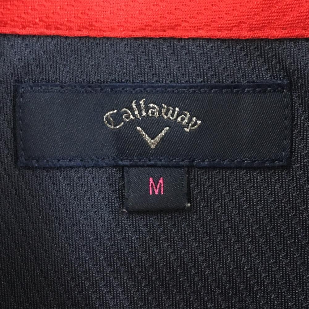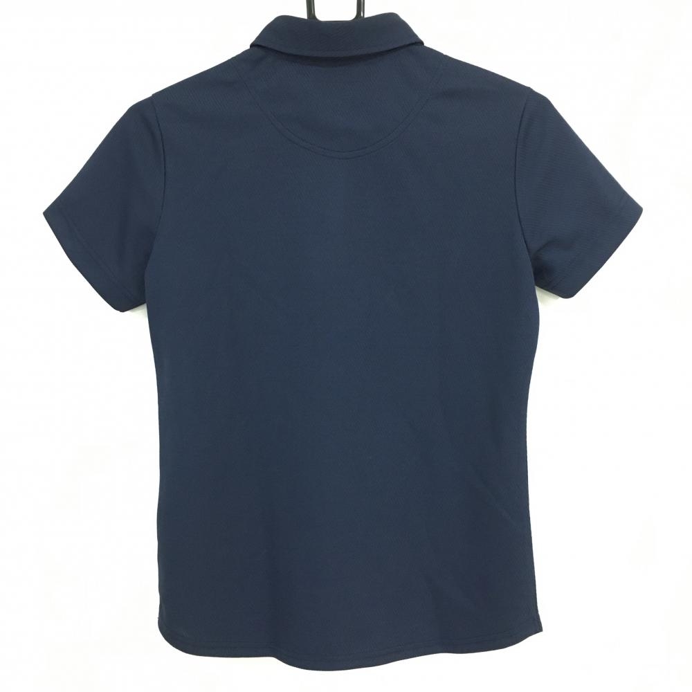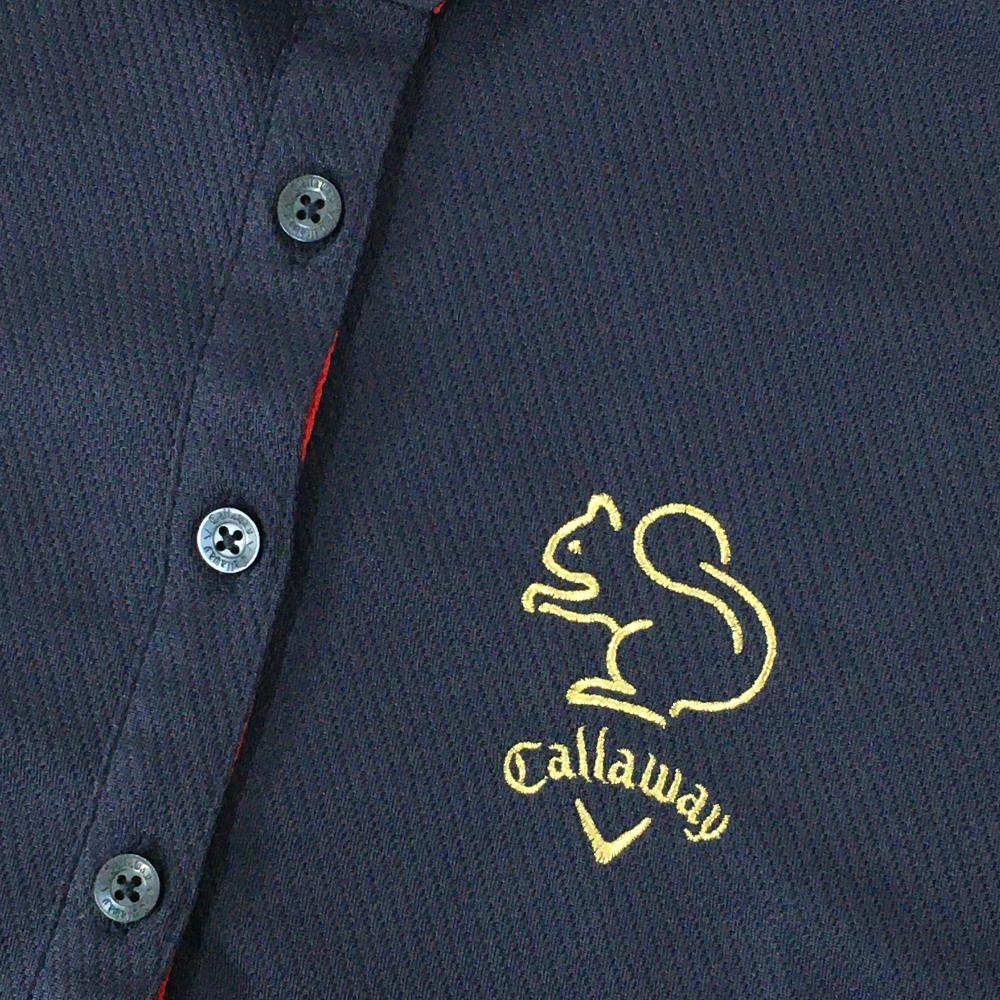 【美品】キャロウェイ 半袖ポロシャツ ネイビー ロゴゴールド 斜めストライプ織生地 リス レディース M ゴルフウェア Callaway
