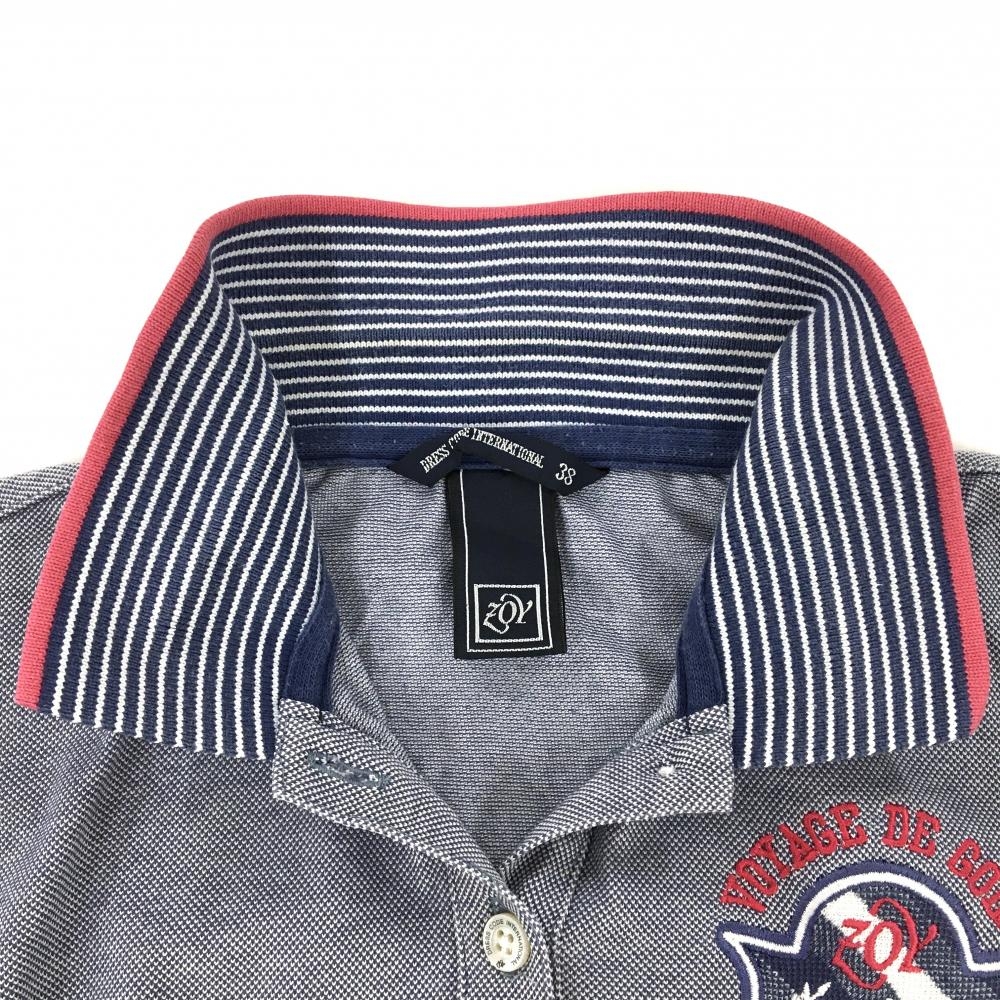 ゾーイ 半袖ポロシャツ ネイビー×白 襟ボーダー レディース 38(M) ゴルフウェア ZOY