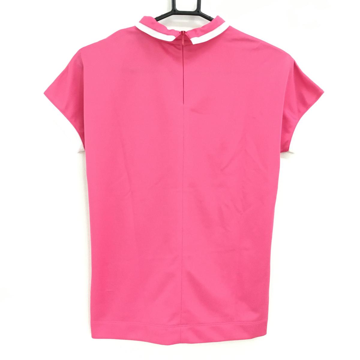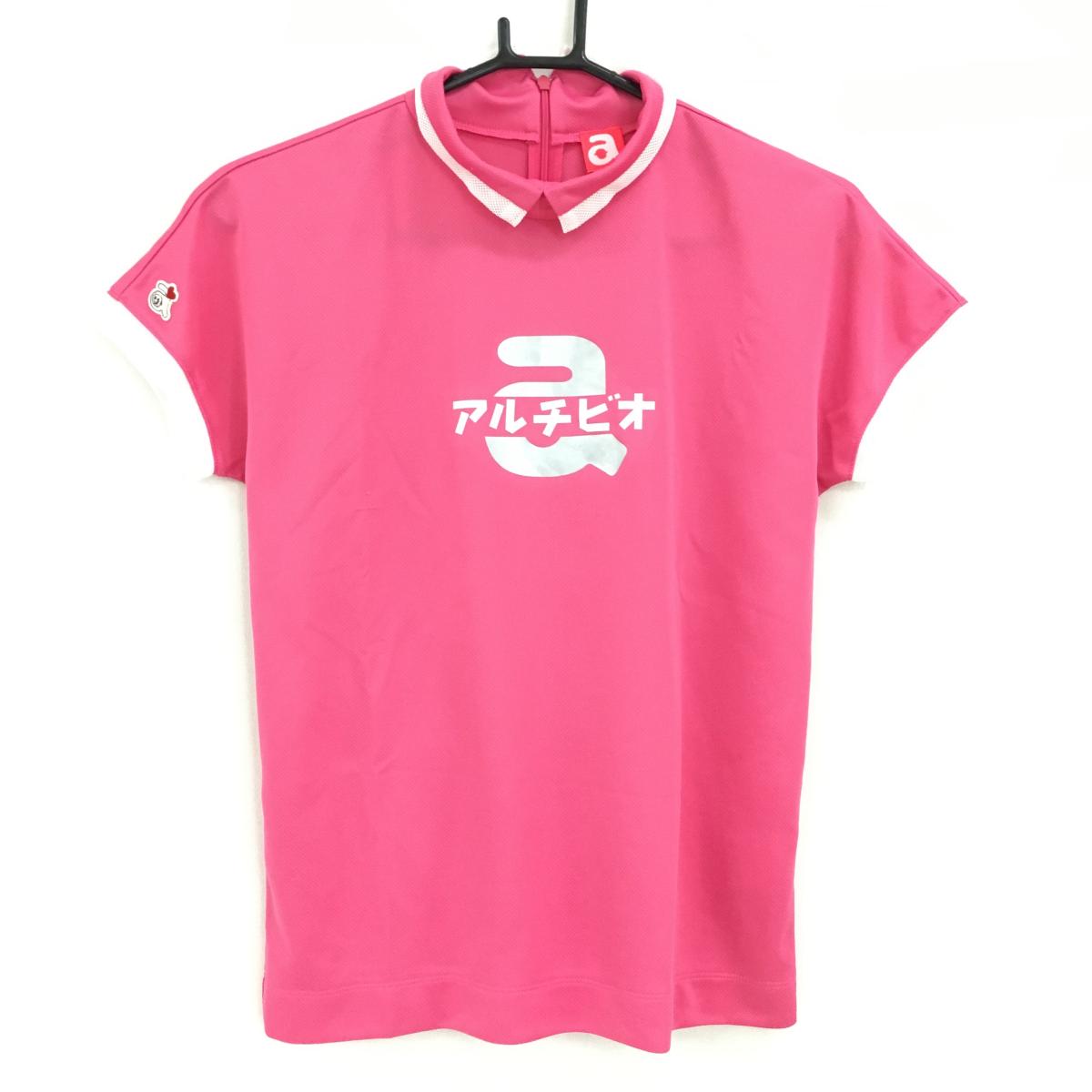 アルチビオ 半袖ハイネックシャツ ピンク×白 後ろハーフジップ ロゴプリント レディース 36(S) ゴルフウェア archivio