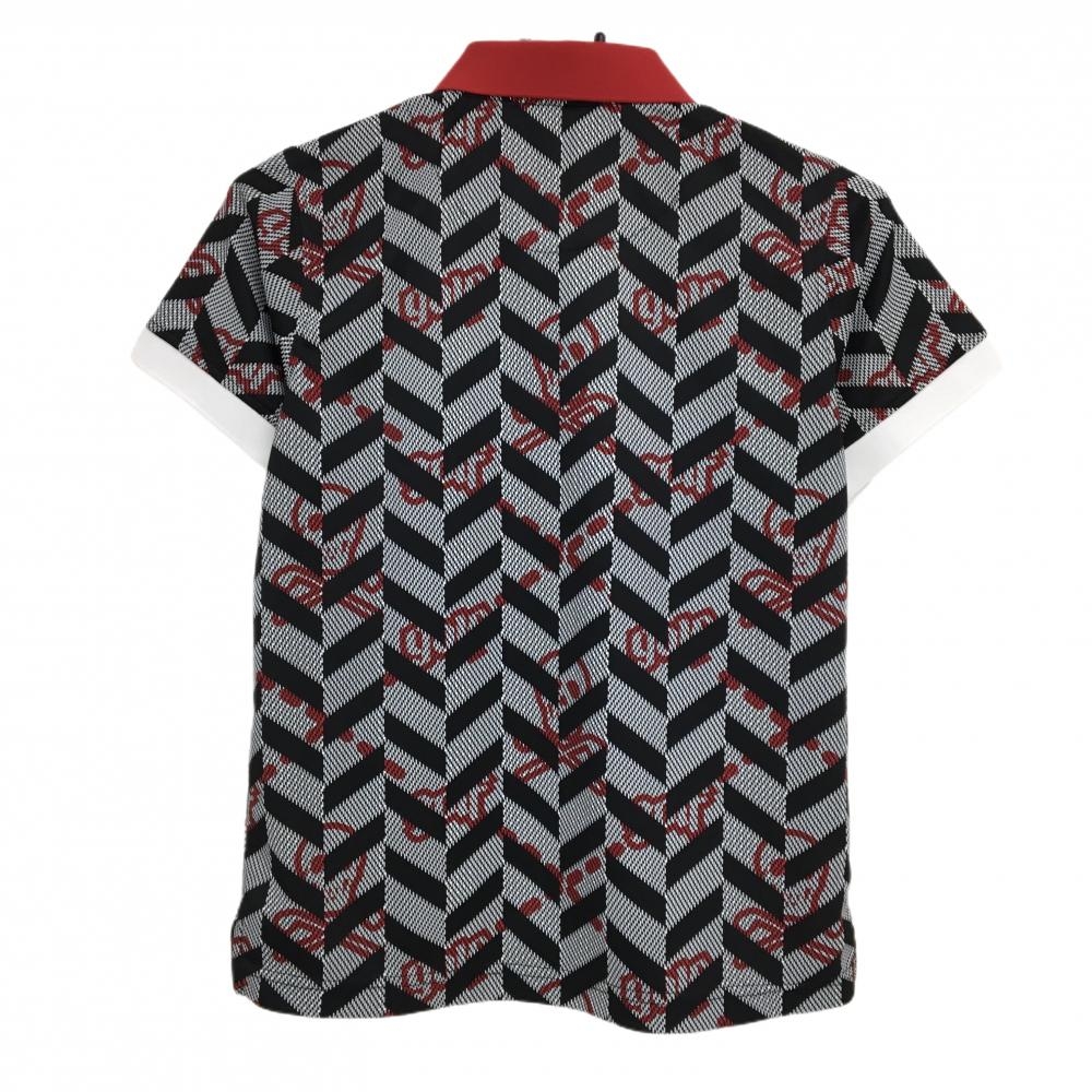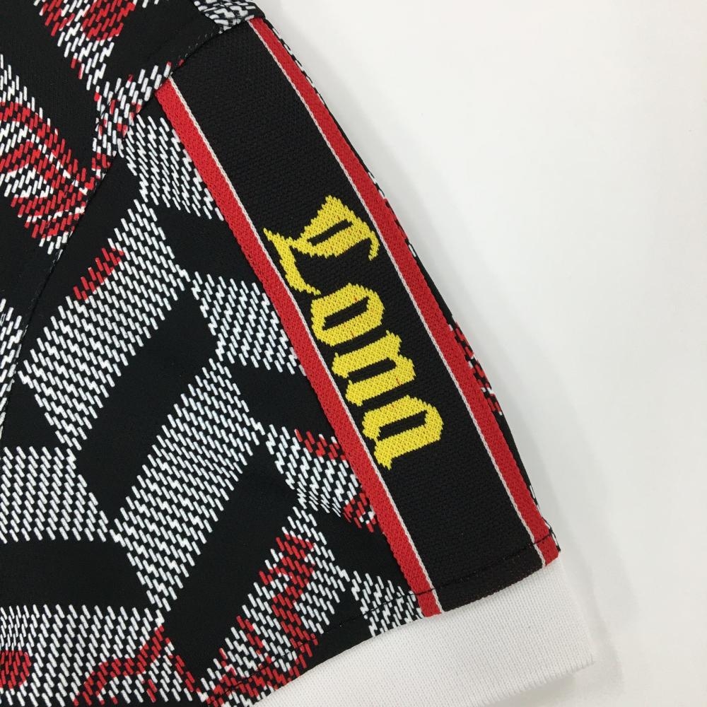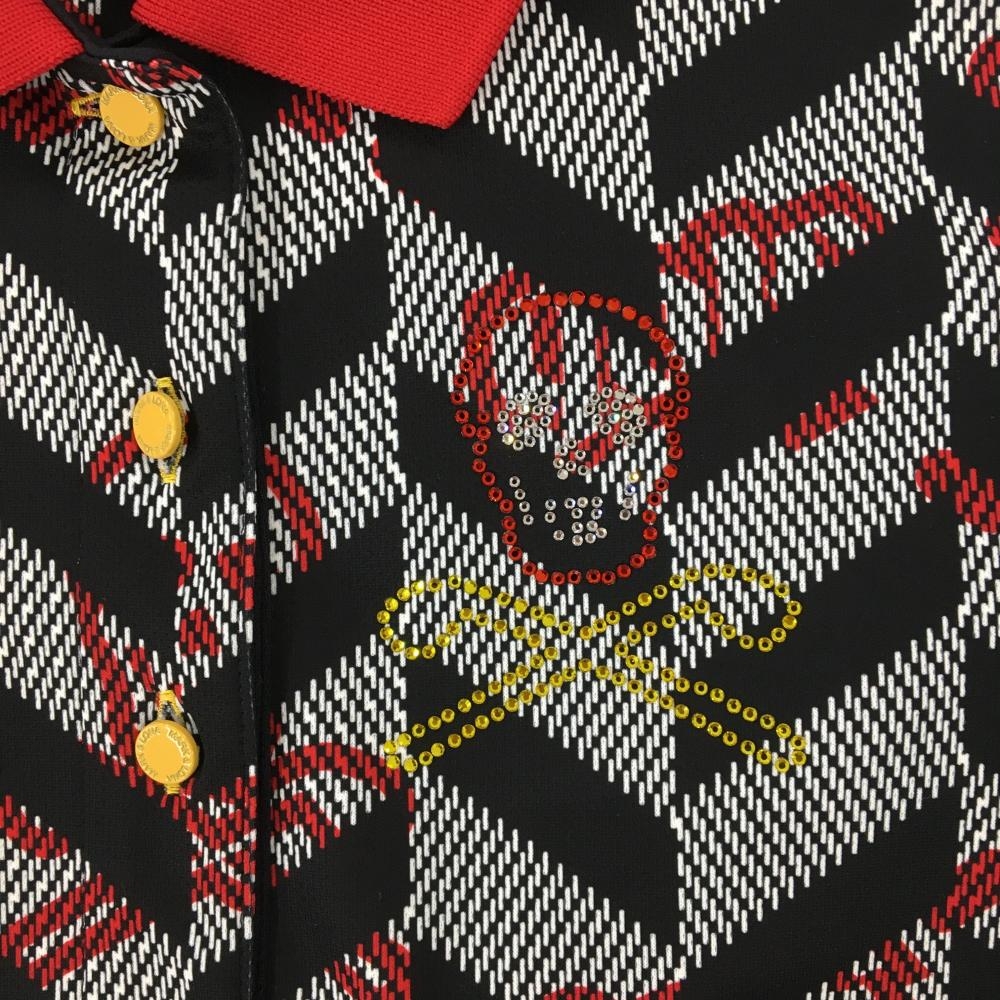 【超美品】マークアンドロナ 半袖ポロシャツ 黒×白×レッド ヘリンボーン スカル柄 レディース 38(M) ゴルフウェア MARK&LONA