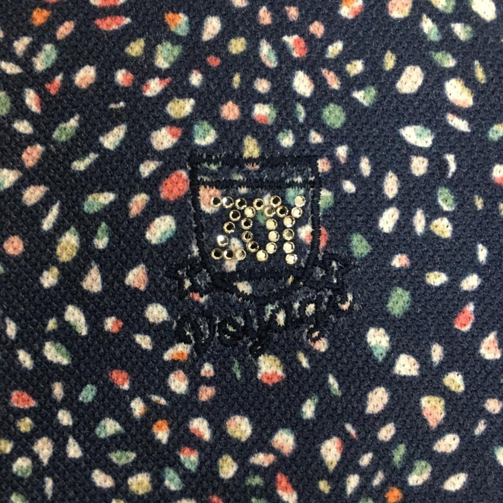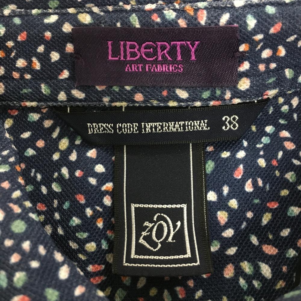 【美品】ゾーイ×LIBERTY 半袖ポロシャツ ネイビー×レッド×ブルー 総柄 レディース 38(M) ゴルフウェア ZOY