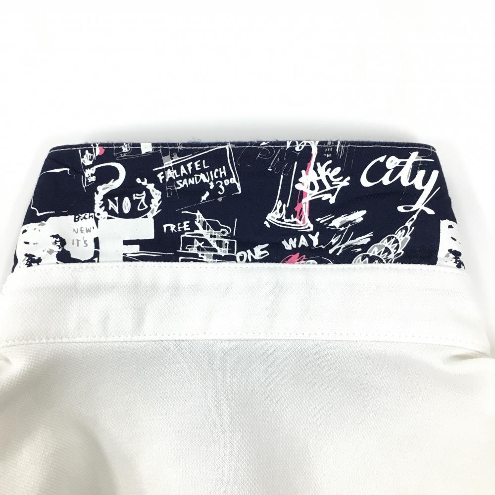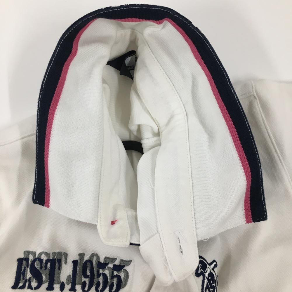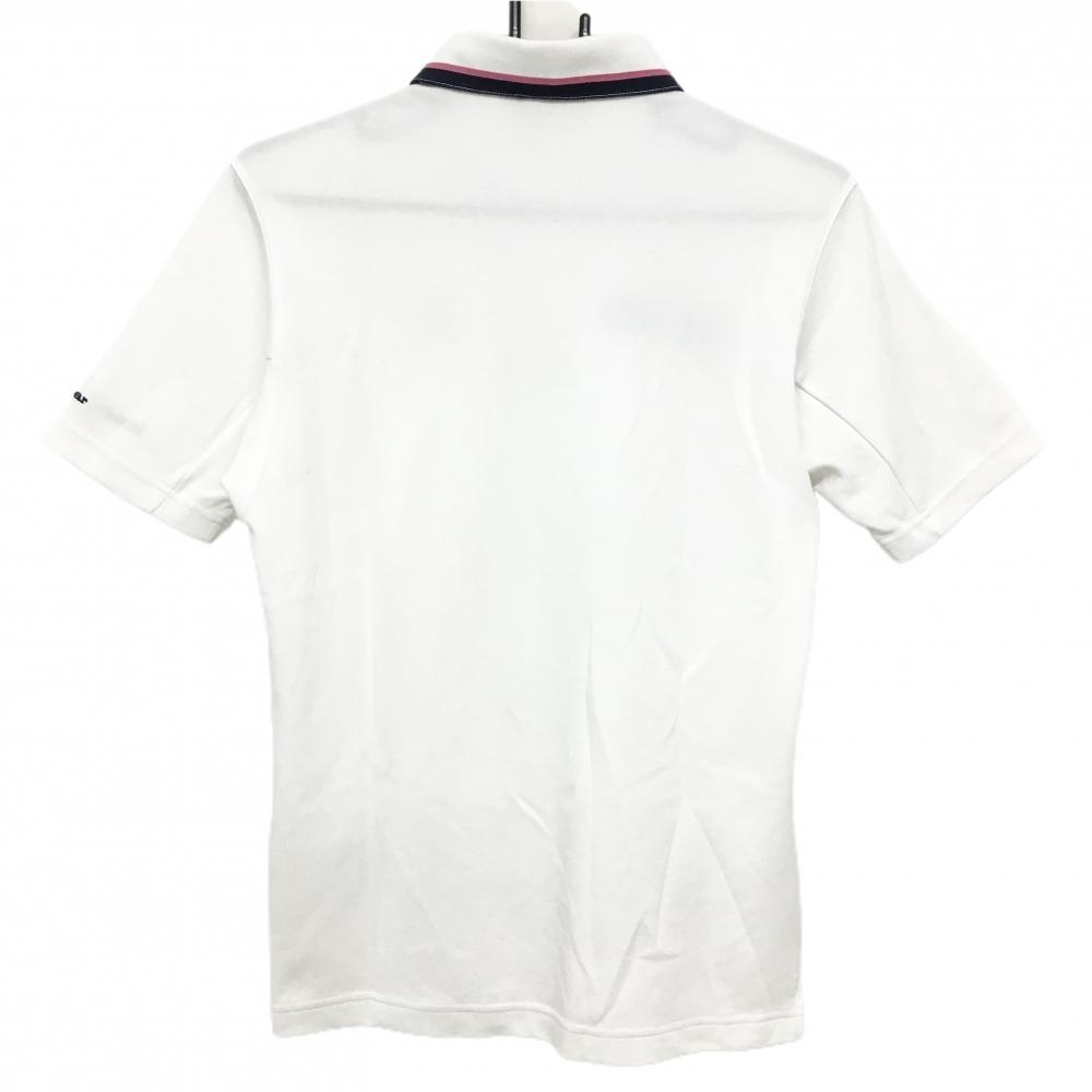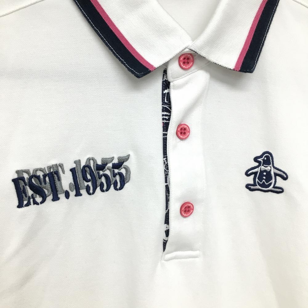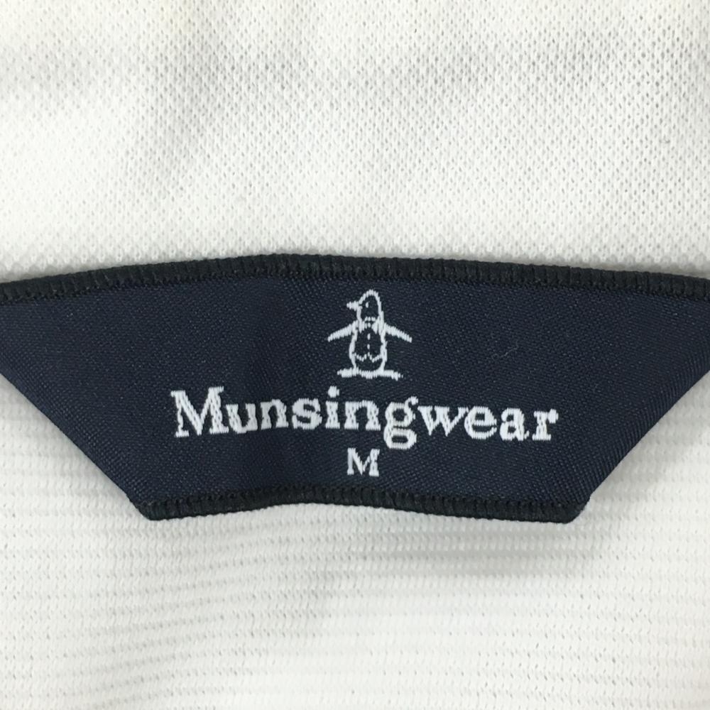 【美品】マンシングウェア 半袖ポロシャツ 白×ネイビー ロゴ刺しゅう 前立て内側柄 メンズ M ゴルフウェア Munsingwear