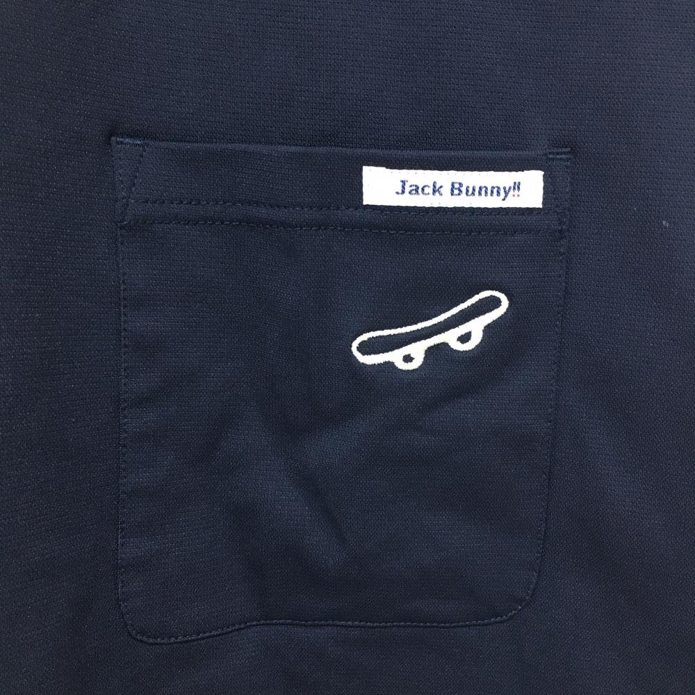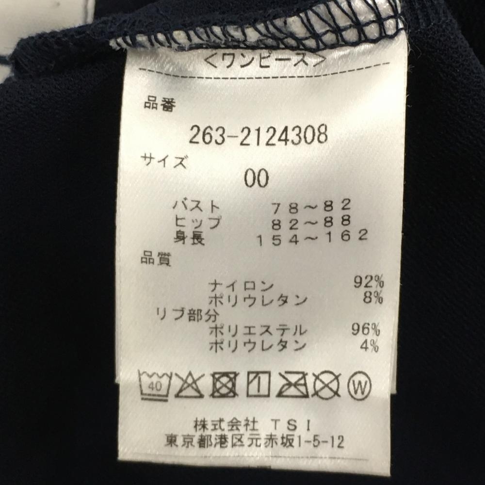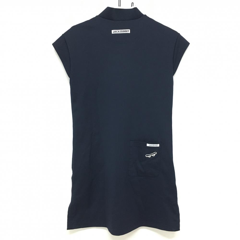 【美品】ジャックバニー 半袖ハイネックワンピース ネイビー×白 ロゴプリント レディース 00(XS) ゴルフウェア Jack Bunny