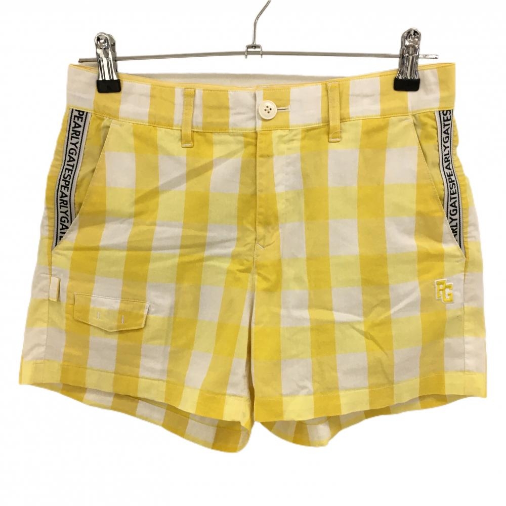 パーリーゲイツ ショートパンツ イエロー×白 ブロックチェック ストレッチ 30周年 レディース 1(M) ゴルフウェア PEARLY GATES