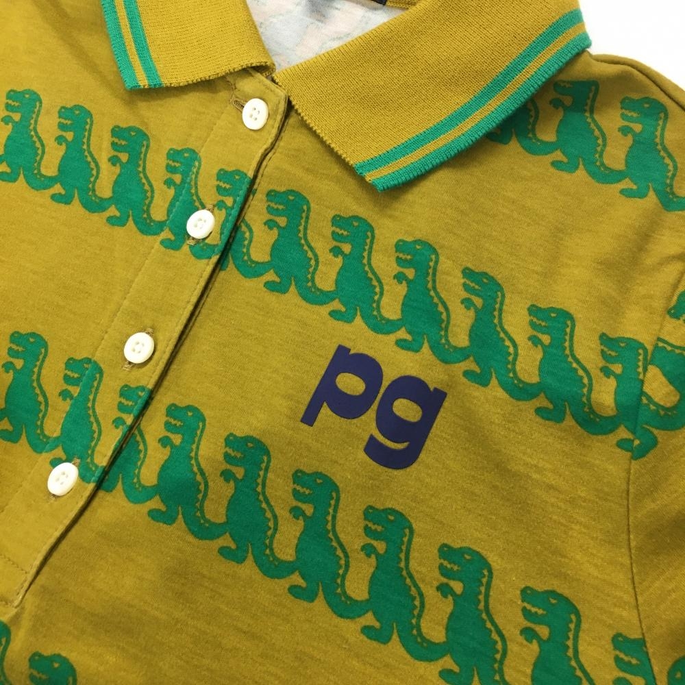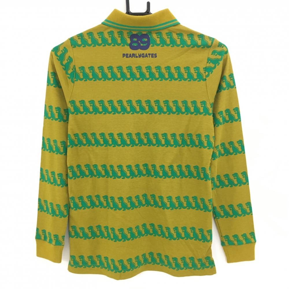 【超美品】パーリーゲイツ 長袖ポロシャツ ブラウン系×グリーン 恐竜総柄 レディース 0(S) ゴルフウェア PEARLY GATES