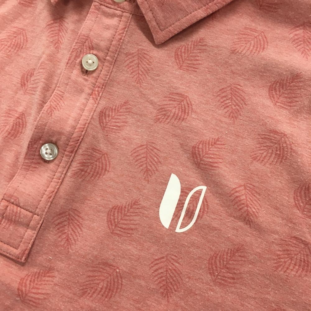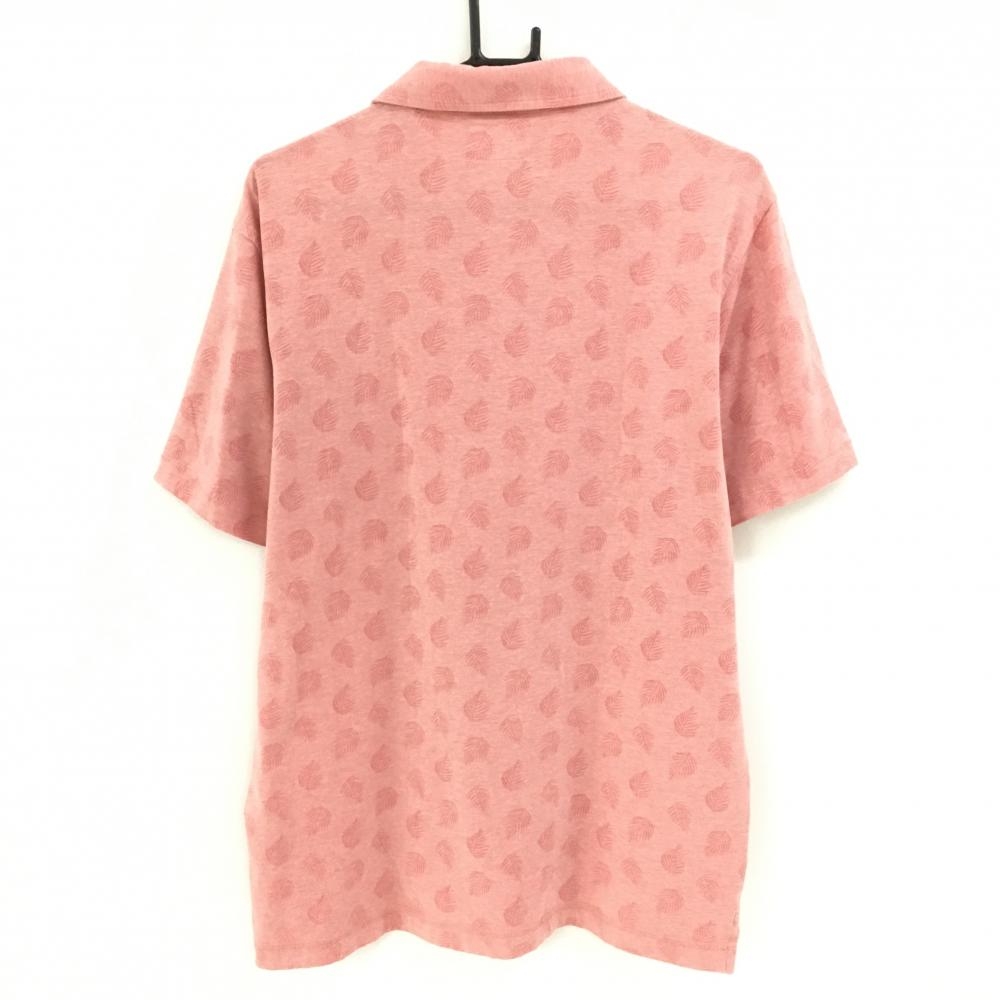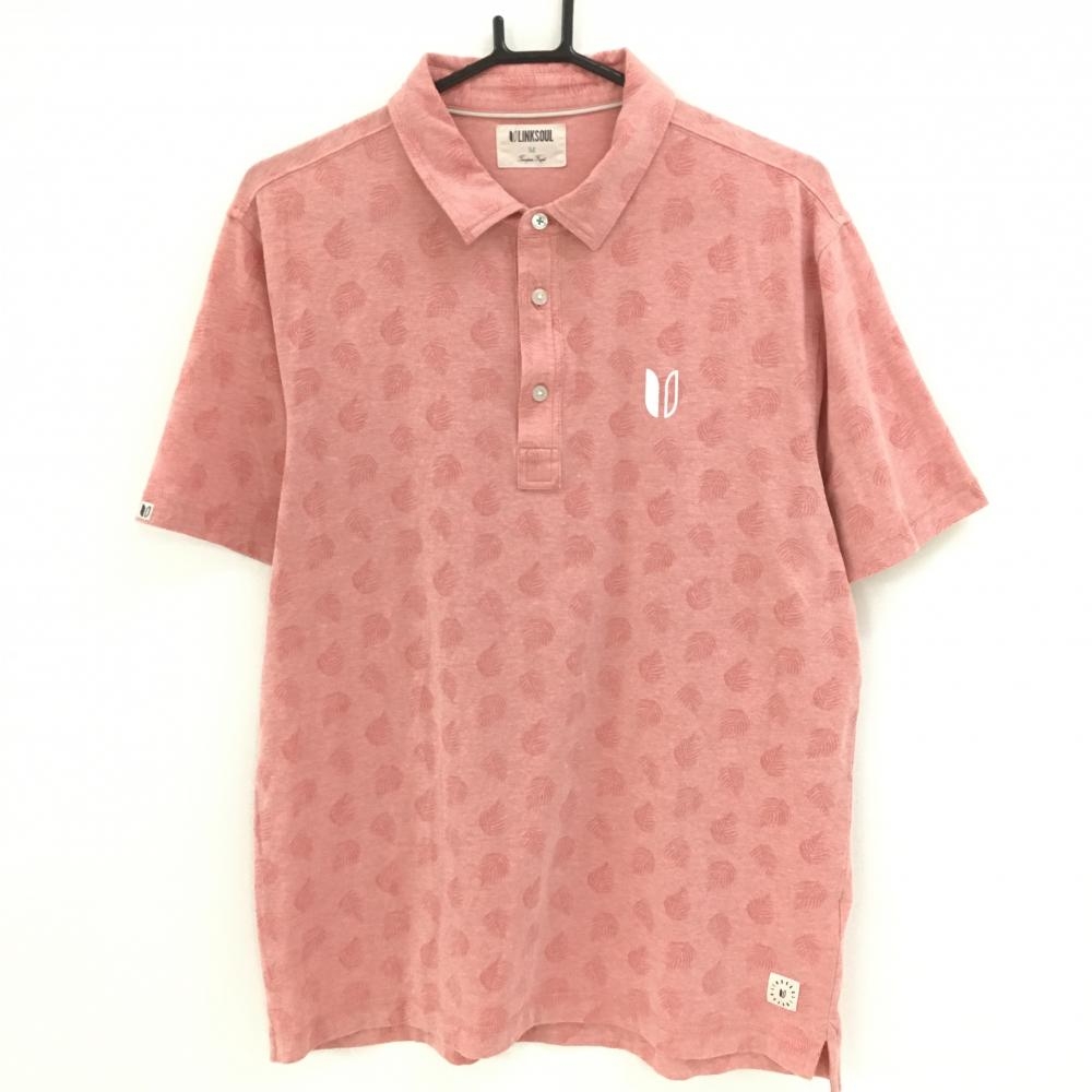 【超美品】リンクソウル 半袖ポロシャツ ピンク リーフ総柄 メンズ M ゴルフウェア LINKSOUL