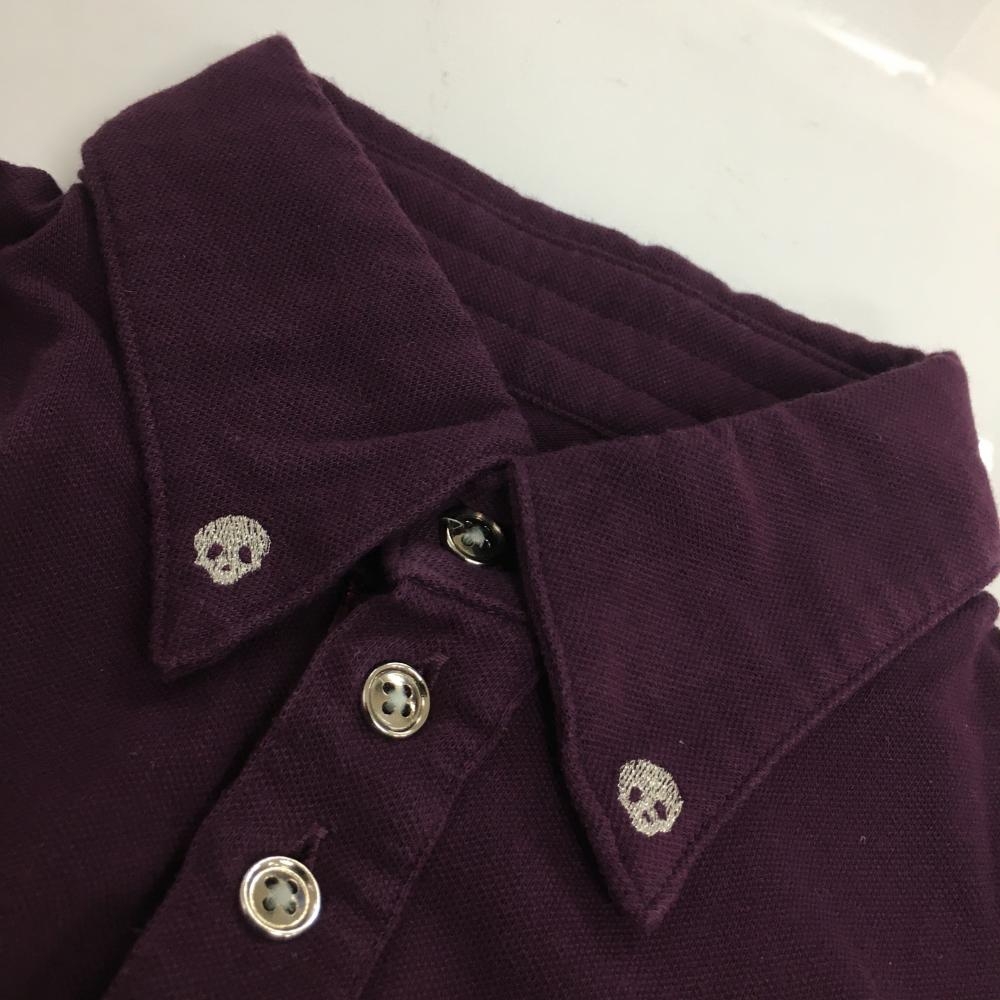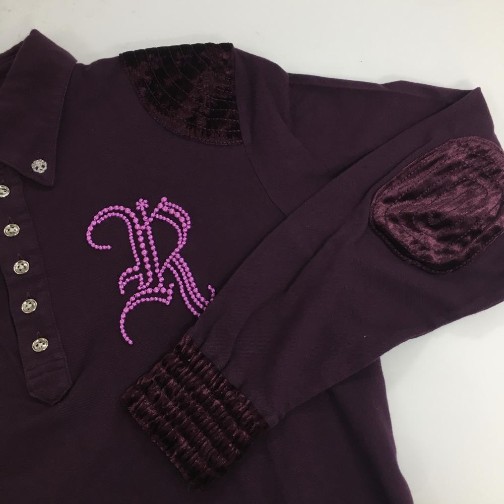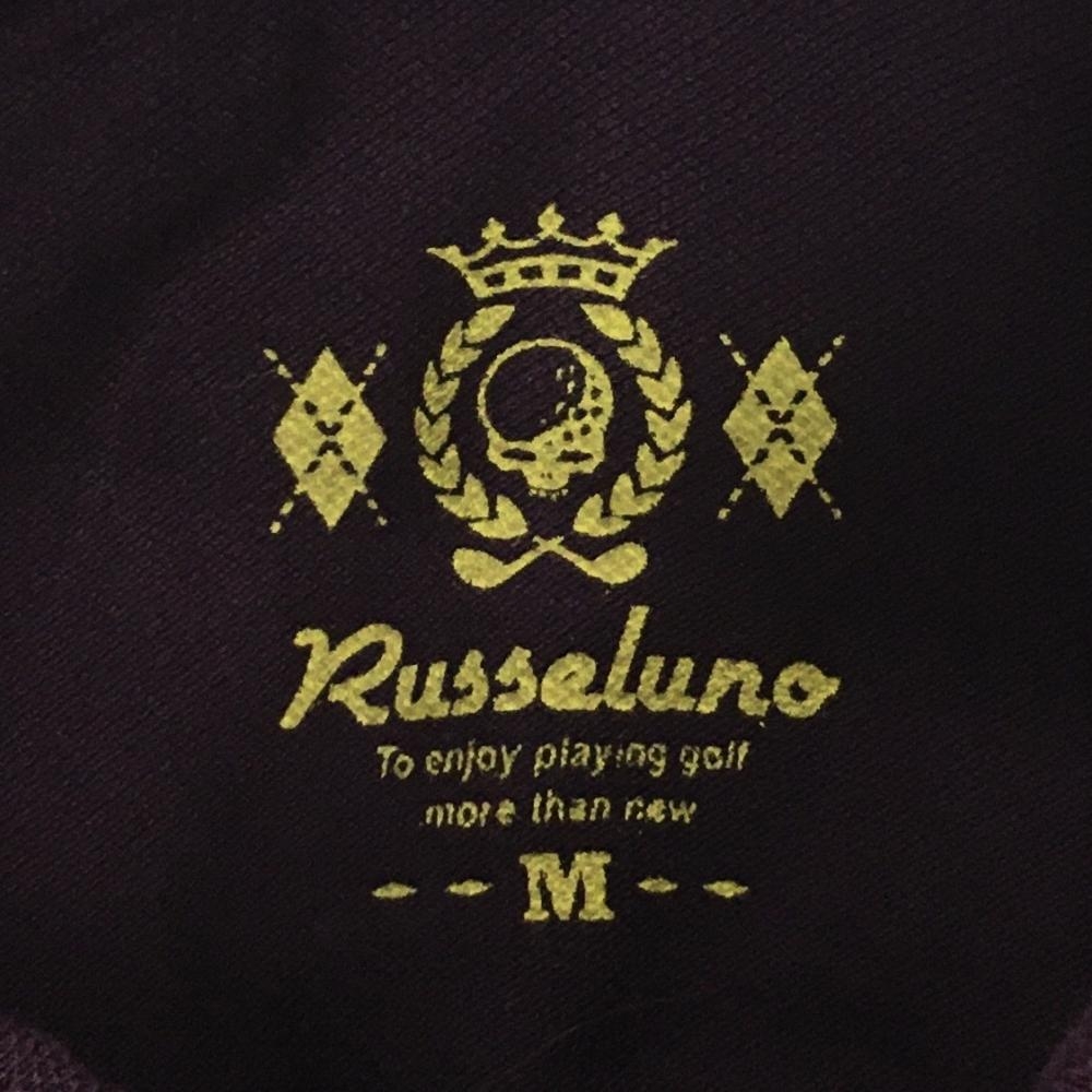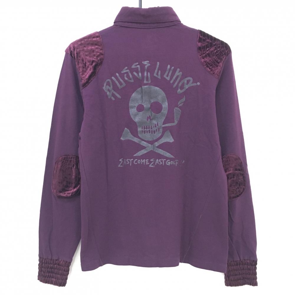 【美品】ラッセルノ 長袖ポロシャツ パープル 後ビッグスカル 一部ベロア メンズ M ゴルフウェア RUSSELUNO