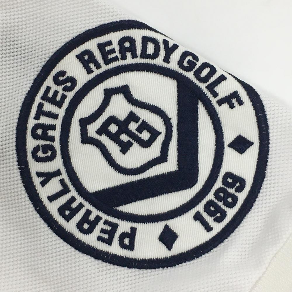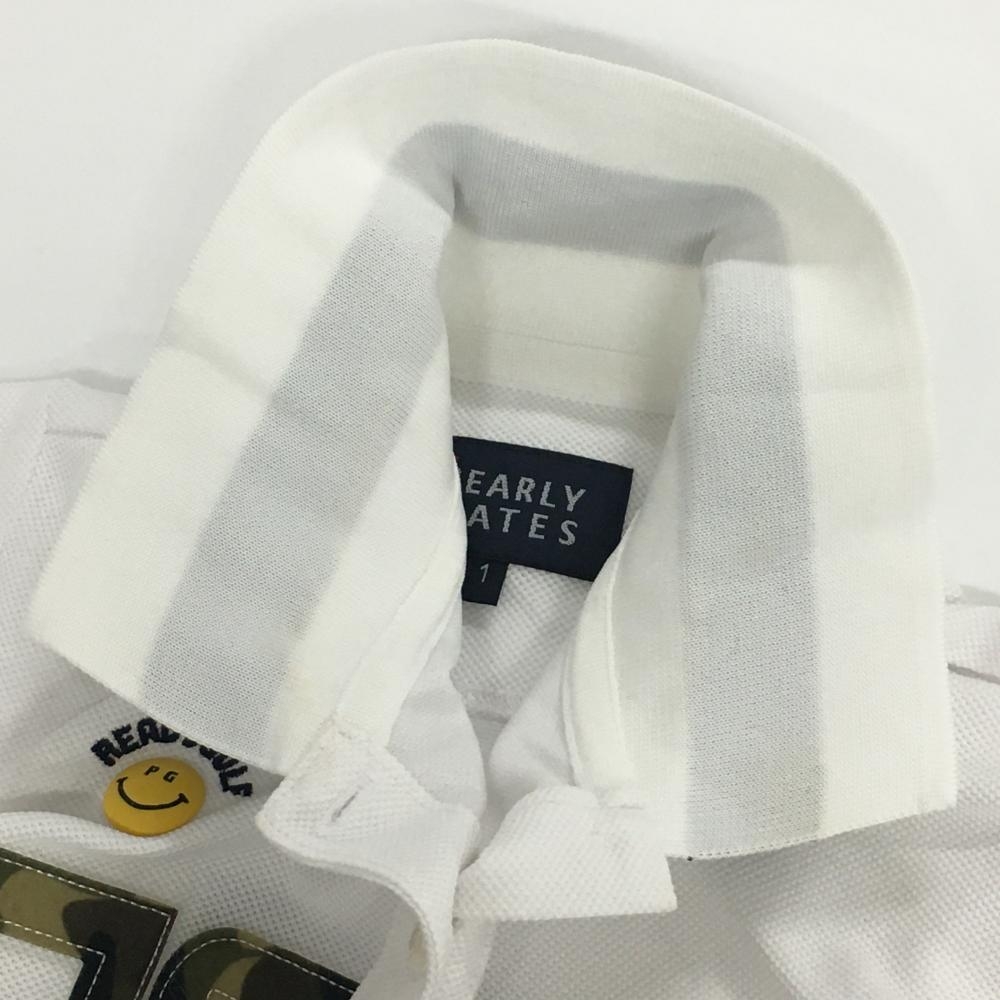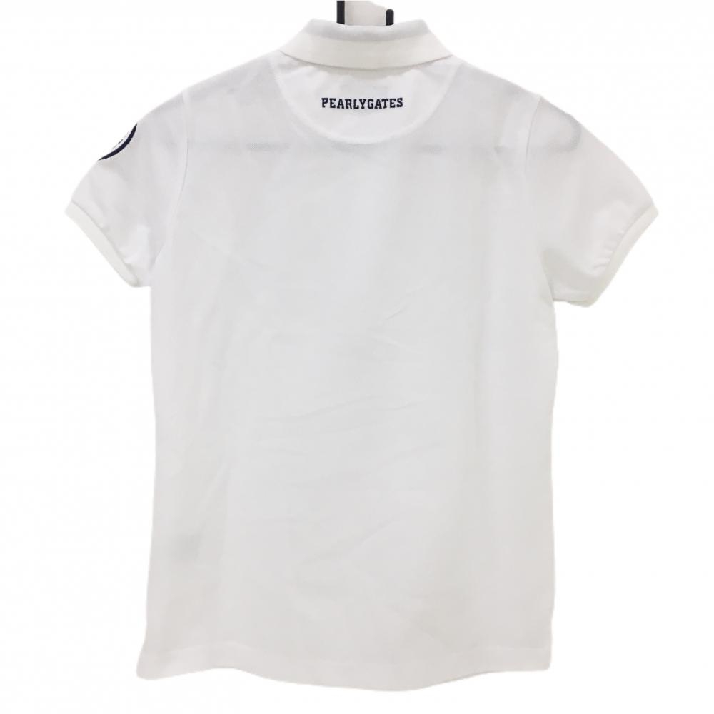【美品】パーリーゲイツ 半袖ポロシャツ 白×カーキ カモフラフェルトロゴ ニコちゃん レディース 1(M) ゴルフウェア PEARLY GATES