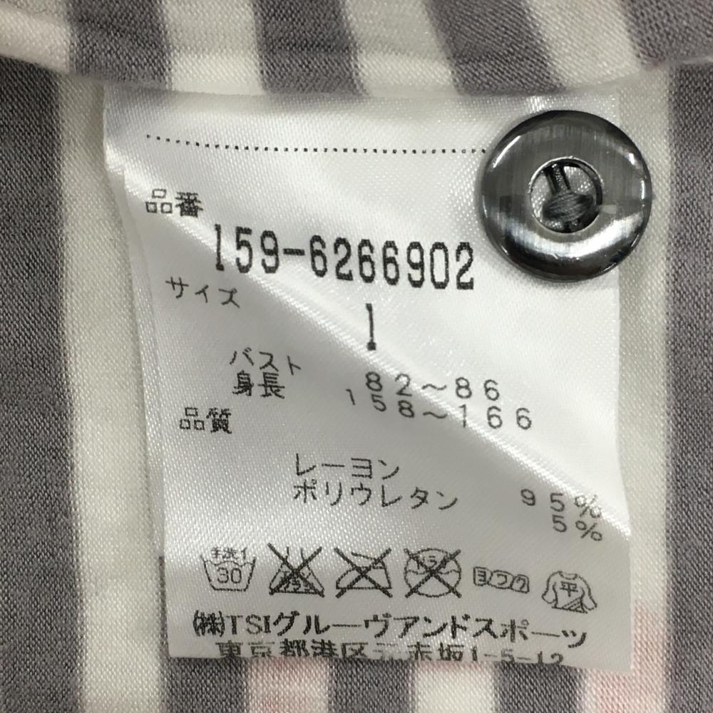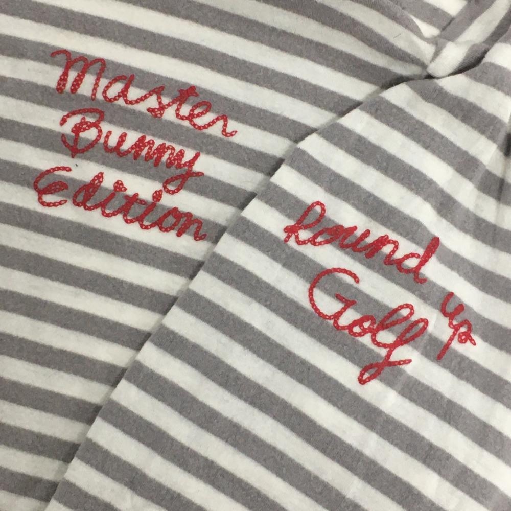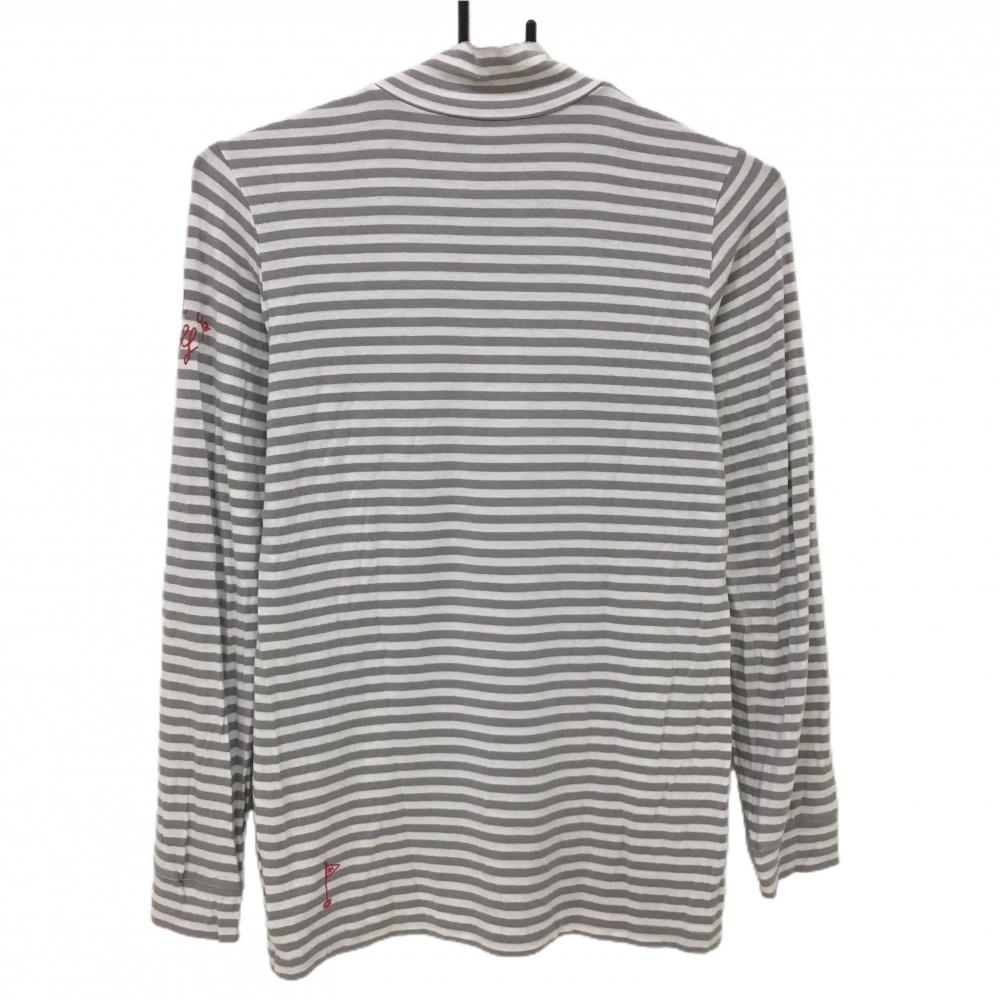 【美品】マスターバニー 長袖ハイネックシャツ ライトグレー×白 ボーダー 微起毛 レディース 1(M) ゴルフウェア MASTER BUNNY EDITION