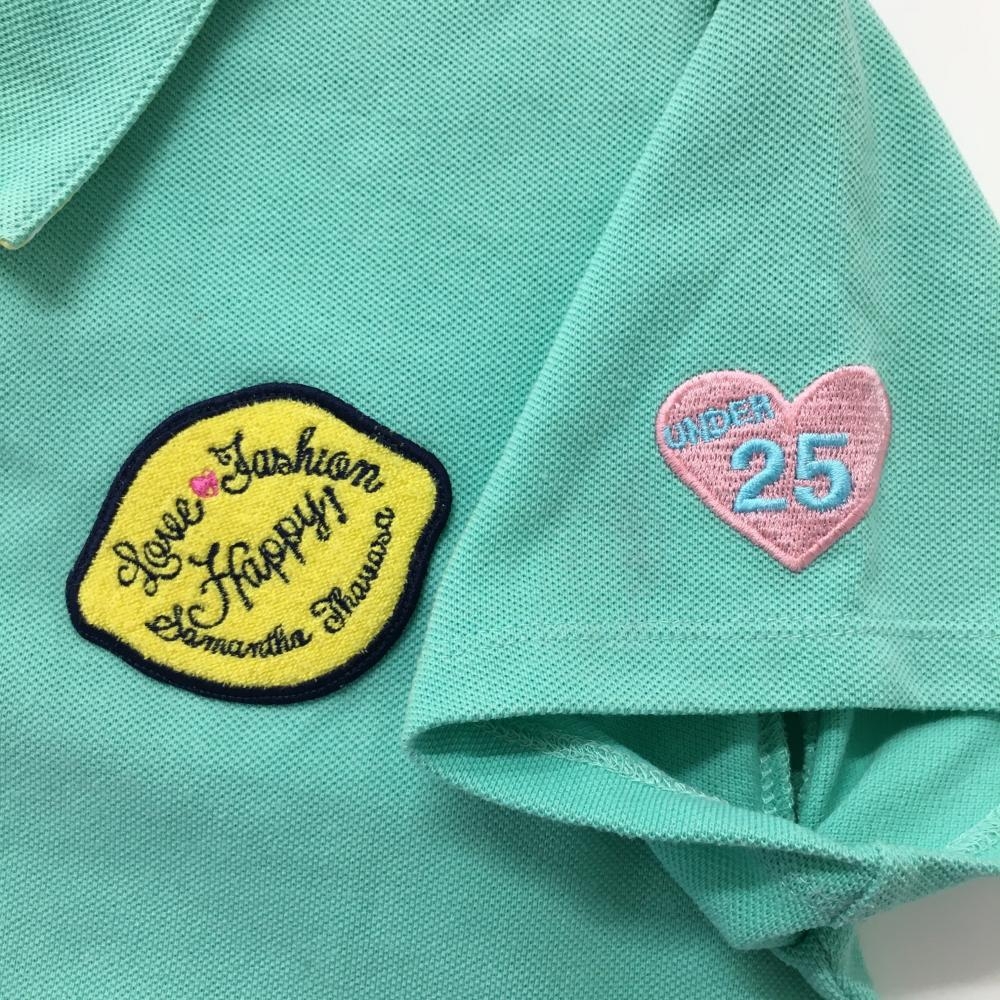 サマンサタバサUNDER25 半袖ポロシャツ ライトグリーン 襟裏ギンガム レディース M ゴルフウェア Samantha Thavasa