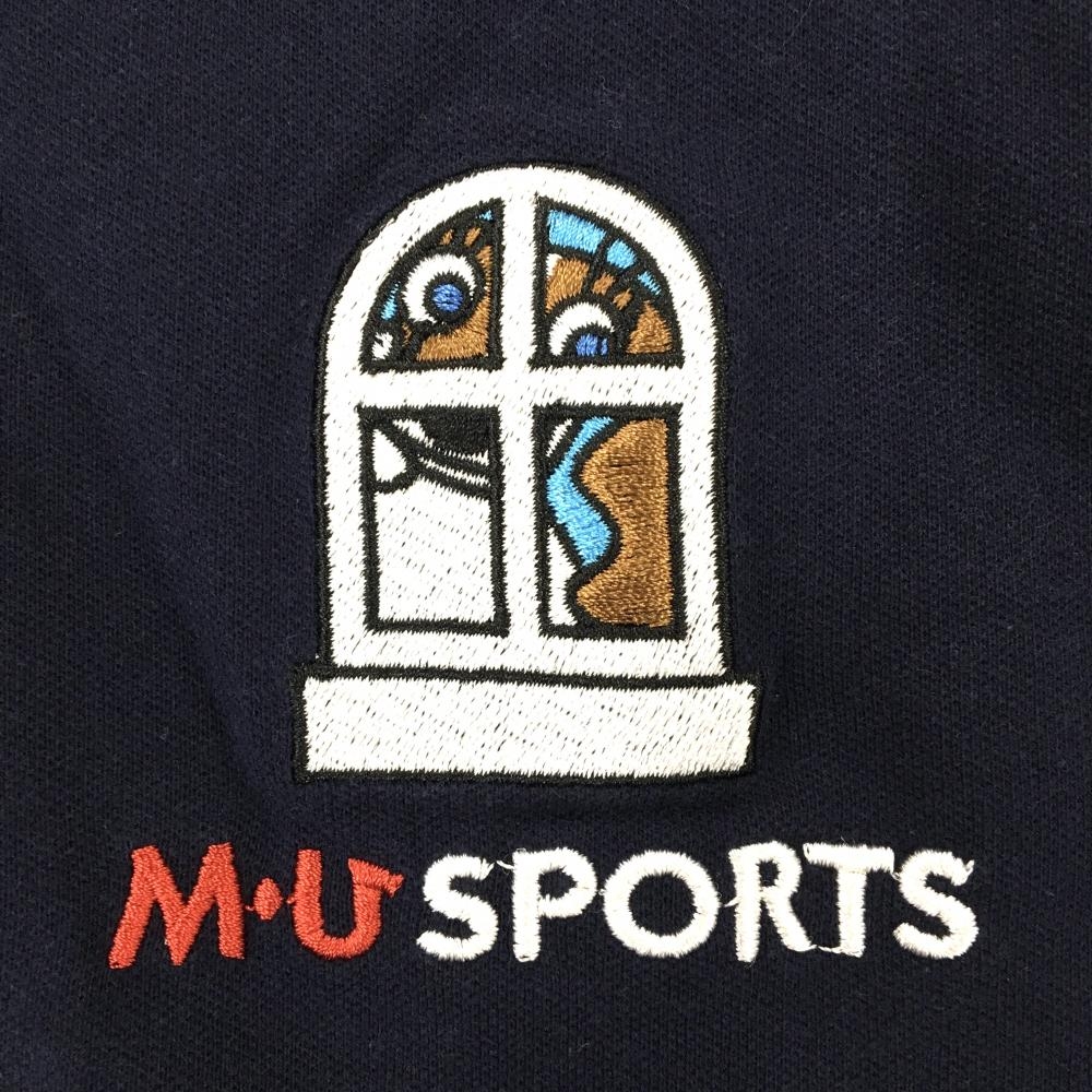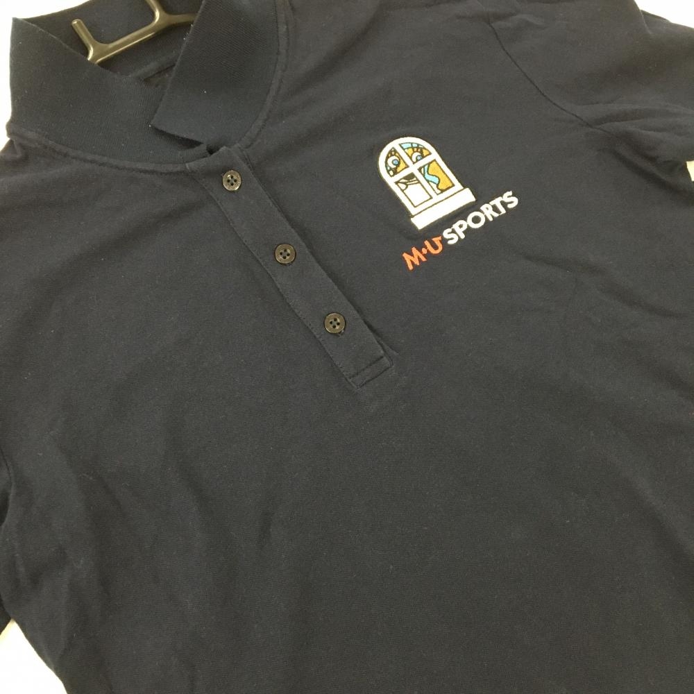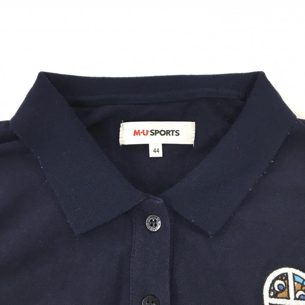 MUスポーツ 長袖ポロシャツ ネイビー 犬刺しゅう レディース 44(XL) ゴルフウェア M・U SPORTS
