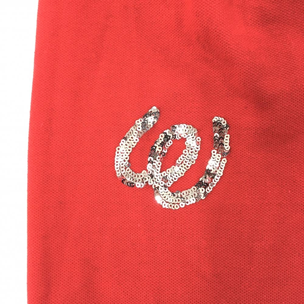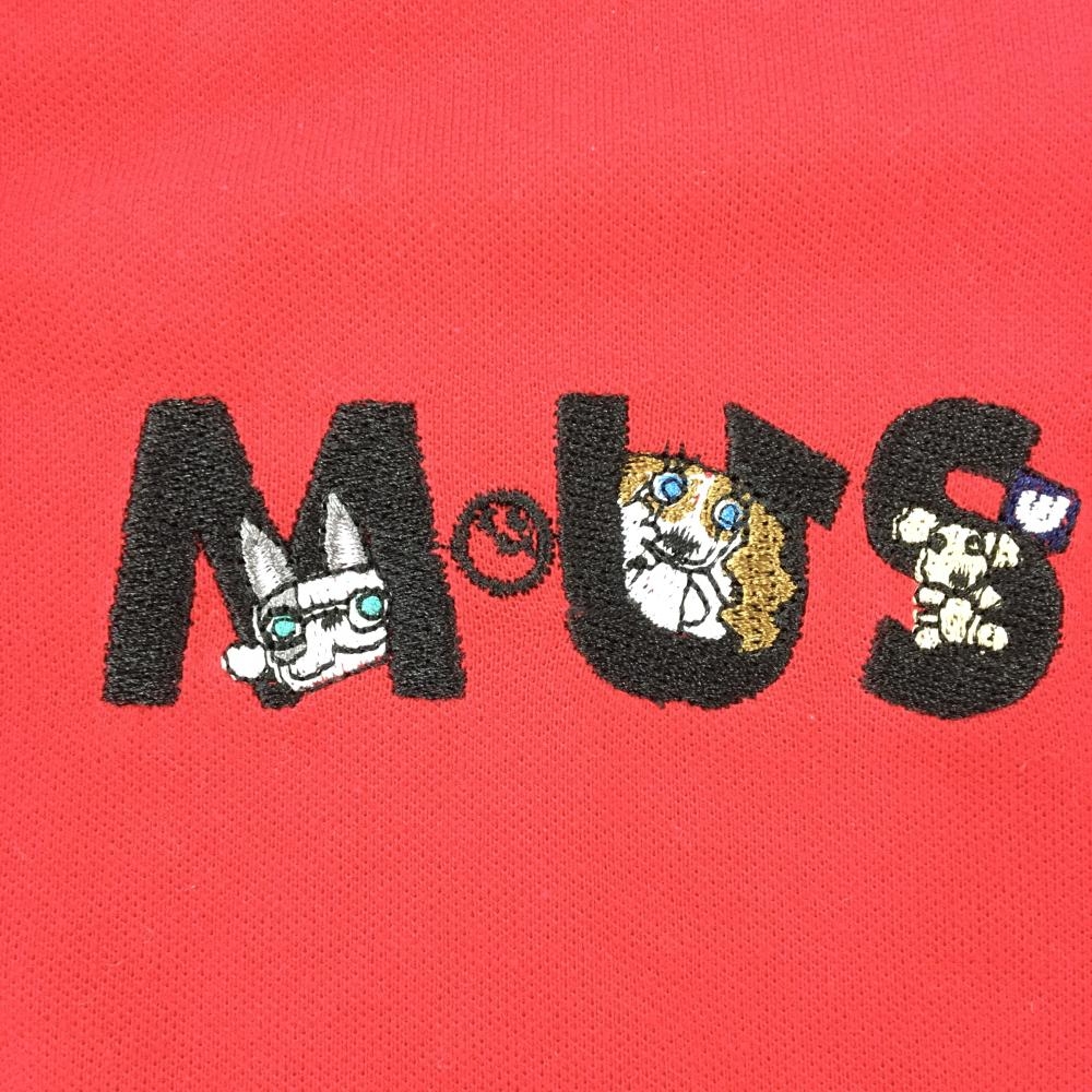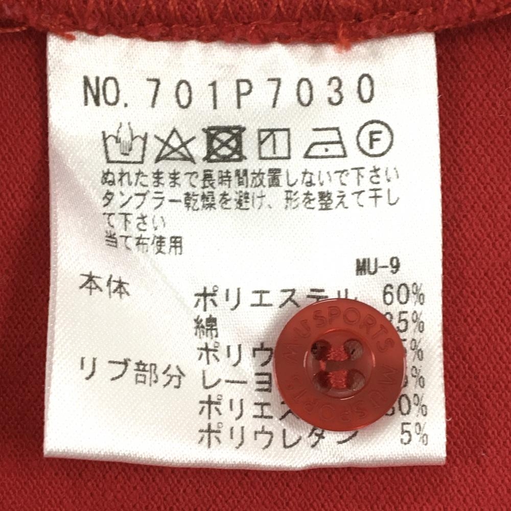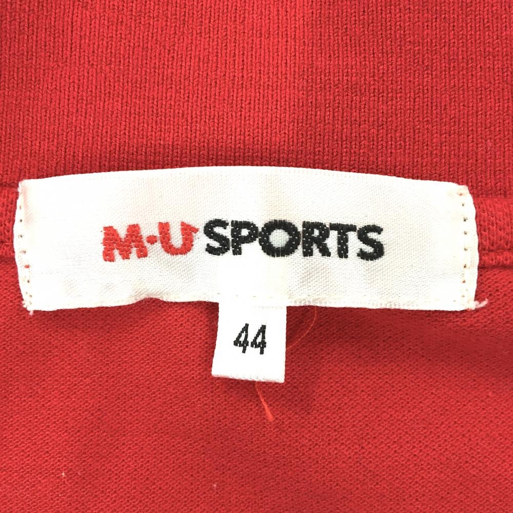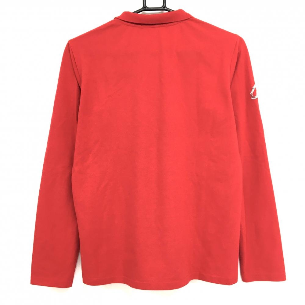 【美品】MUスポーツ 長袖ポロシャツ レッド 犬刺しゅう 袖スパンコールロゴ レディース 44(XL) ゴルフウェア M・U SPORTS